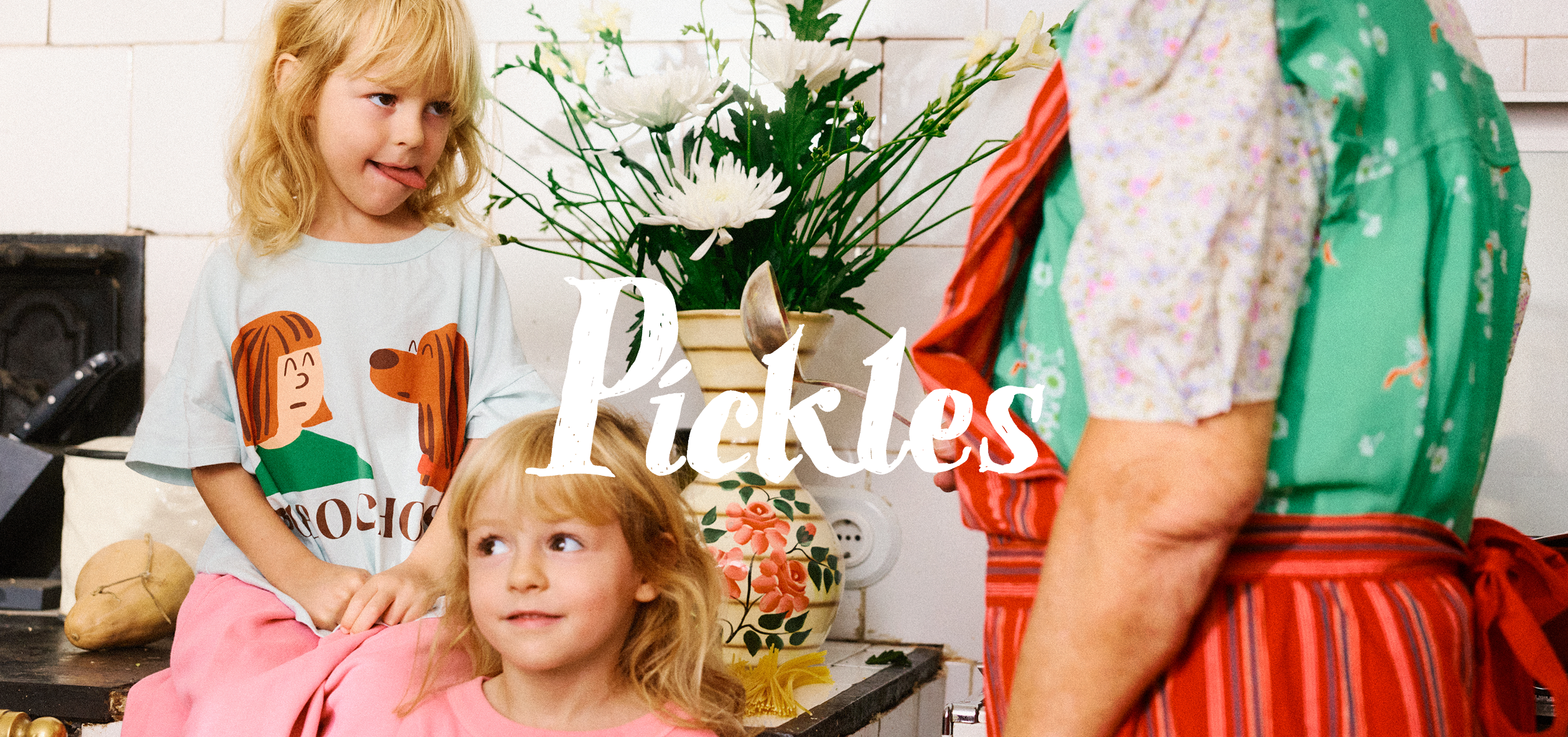 A tribute to berry-filled baskets, sudden rain, and the art of savoring summer.SS26 Pickles is a celebration of slow, rebellious summers — where routines break, hands stain with berries, and sudden storms become part of the fun. Inspired by the small wonders of countryside days — the magic tucked inside glass jars, the hum of a TV where a little dog named Pickles who becomes a hero after finding a trophy that was stolen long ago, the thrill of dusty treasures — the collection captures the imperfect, playful moments that make life unforgettable.