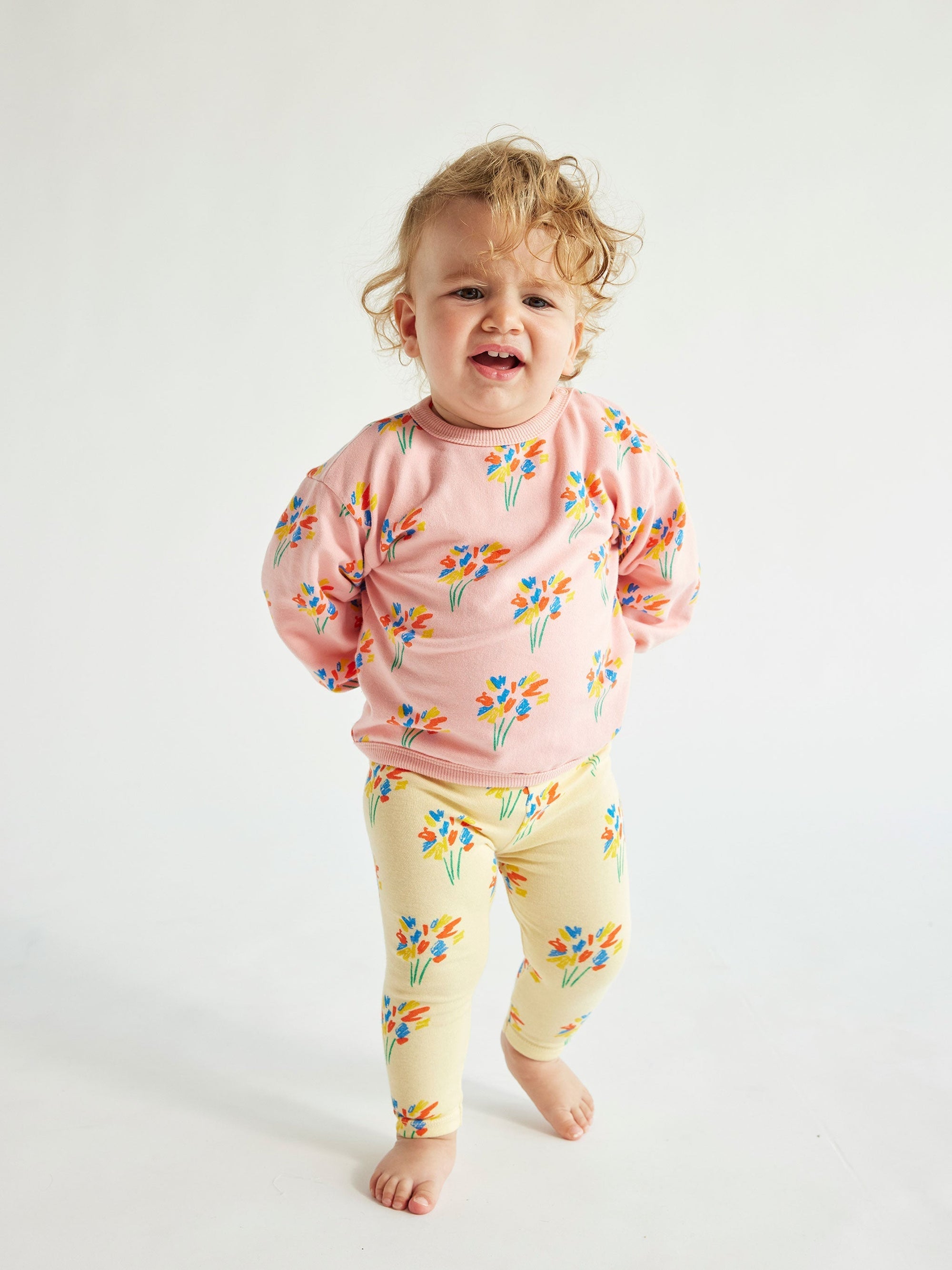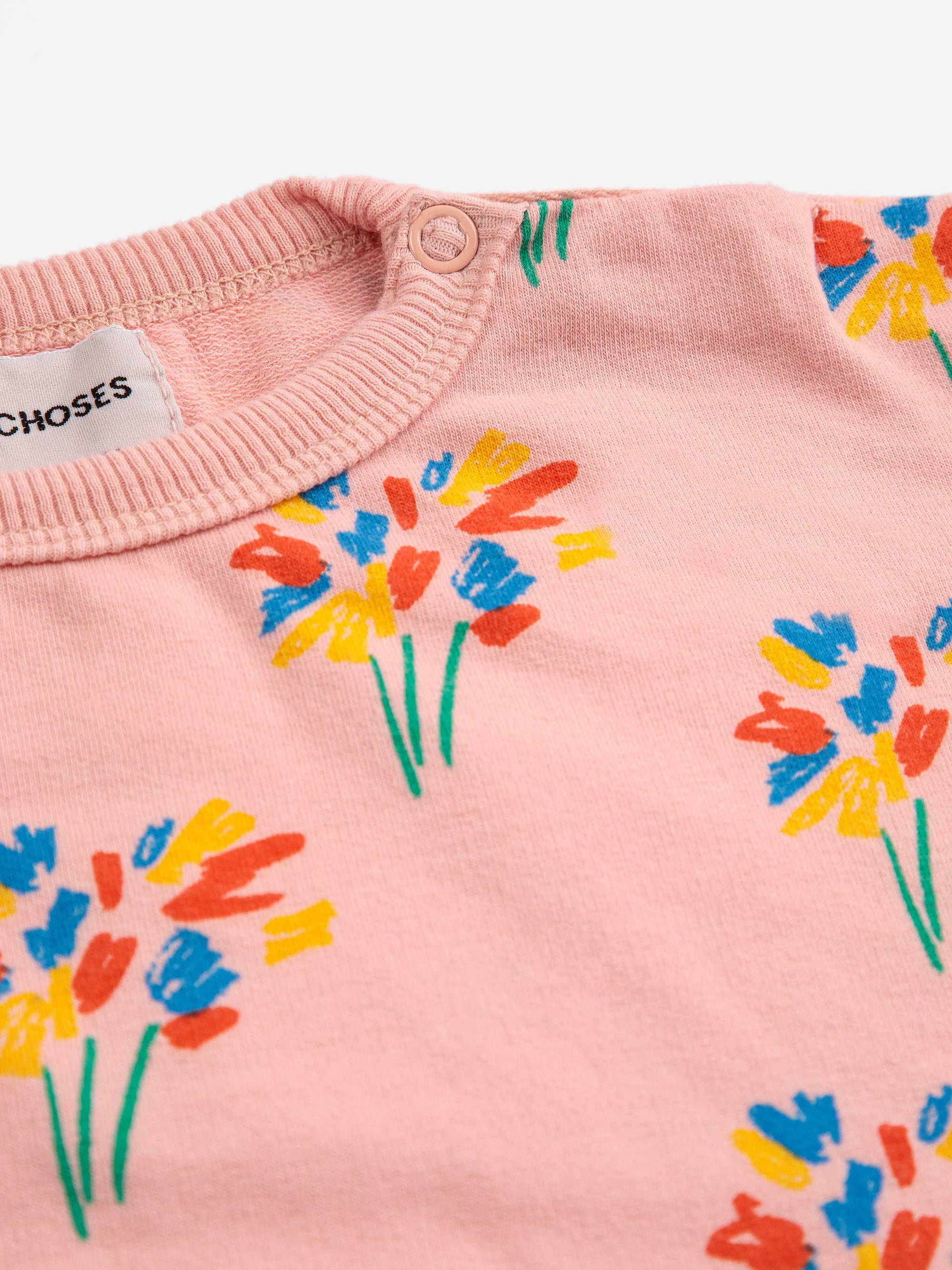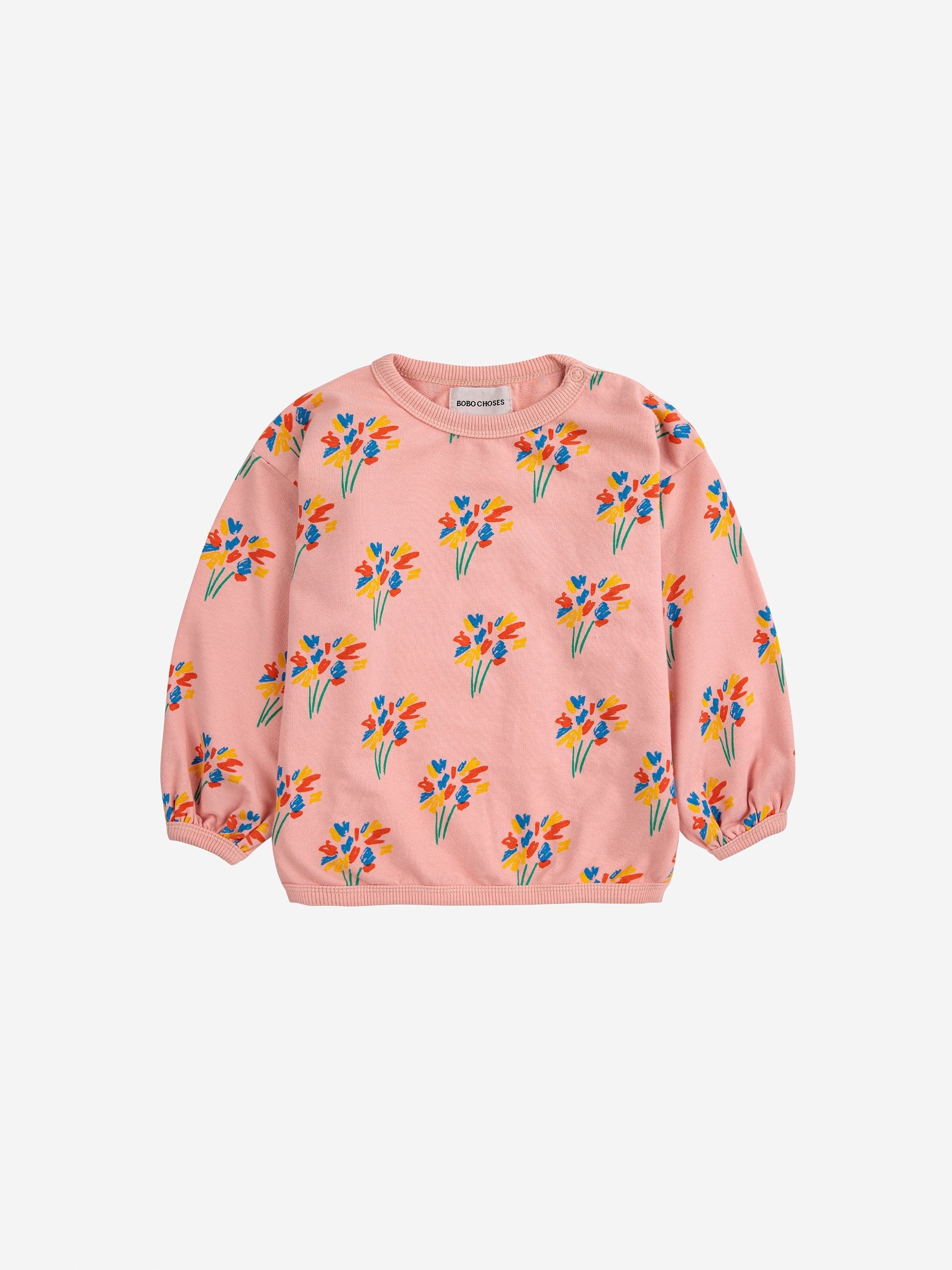 オーガニックコットン94%、エラスタン6%を使用したピンクのスウェットシャツ。長袖、ドロップショルダー、肩のスナップボタン留め、ゆったりとしたフィット感、ラウンドネック、フリース素材。スペイン製。