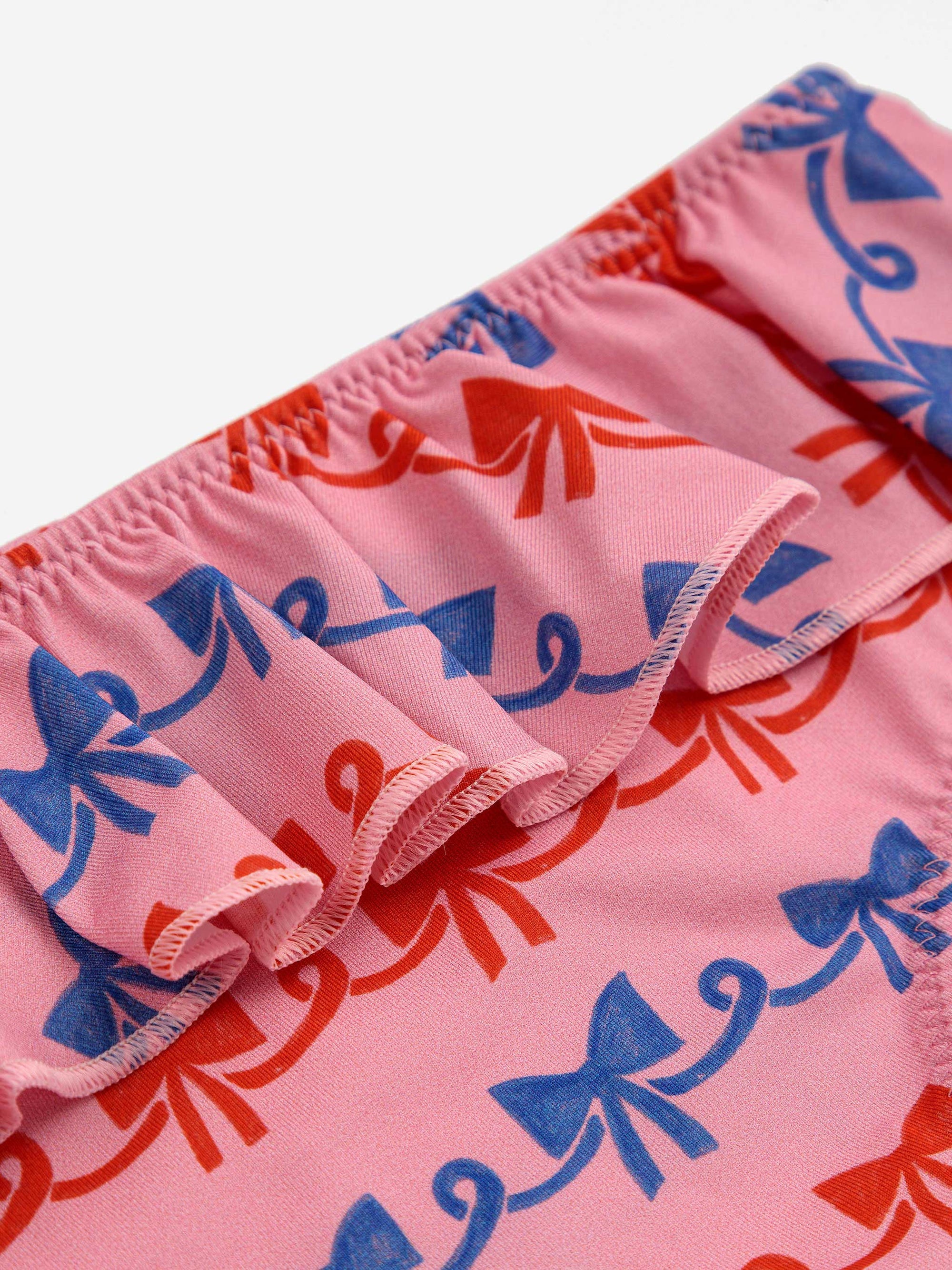 再生ポリアミド83%、エラスタン17%を使用したピンクのスイムキュロット。スペイン製。