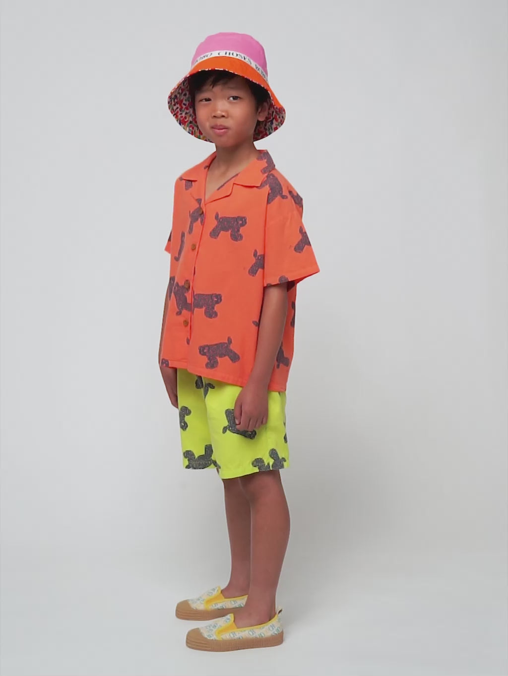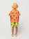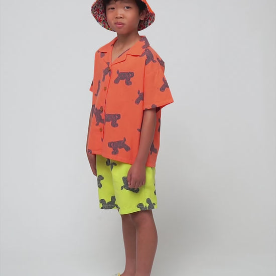 BCIコットン100%のオレンジシャツ。テーラードカラー、半袖、フロントボタン留め、ゆったりとしたフィット感が特徴です。スペイン製。