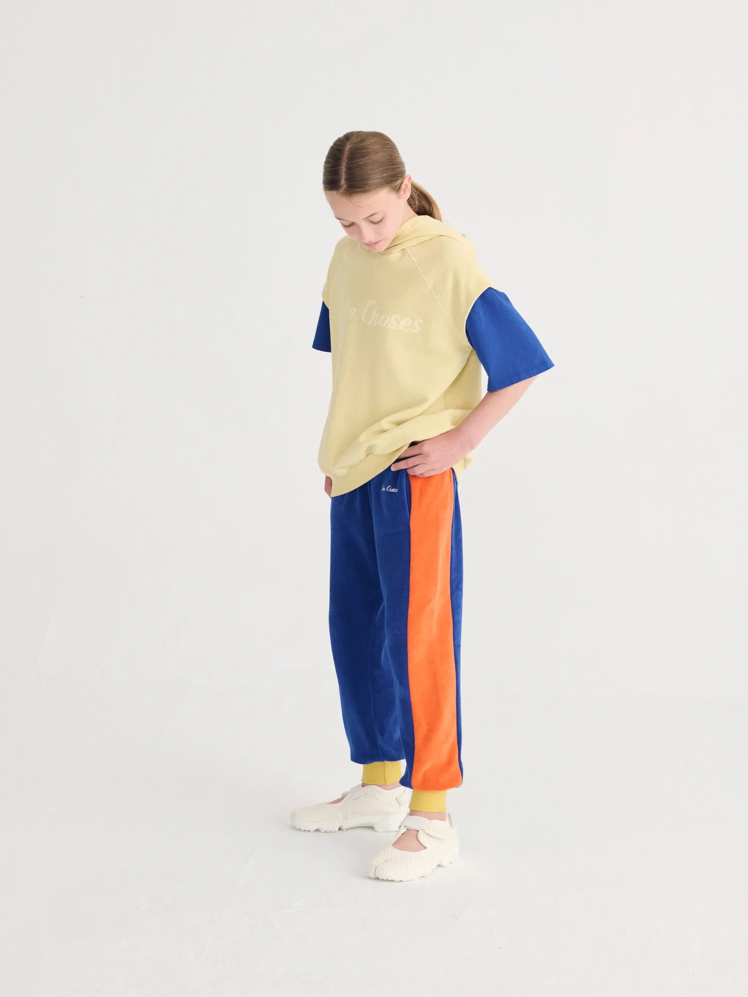 フード付きのスウェットシャツ。袖なしデザインで、リブ付きのカフスと裾を備えたルーズフィットのシルエットです。スペイン製