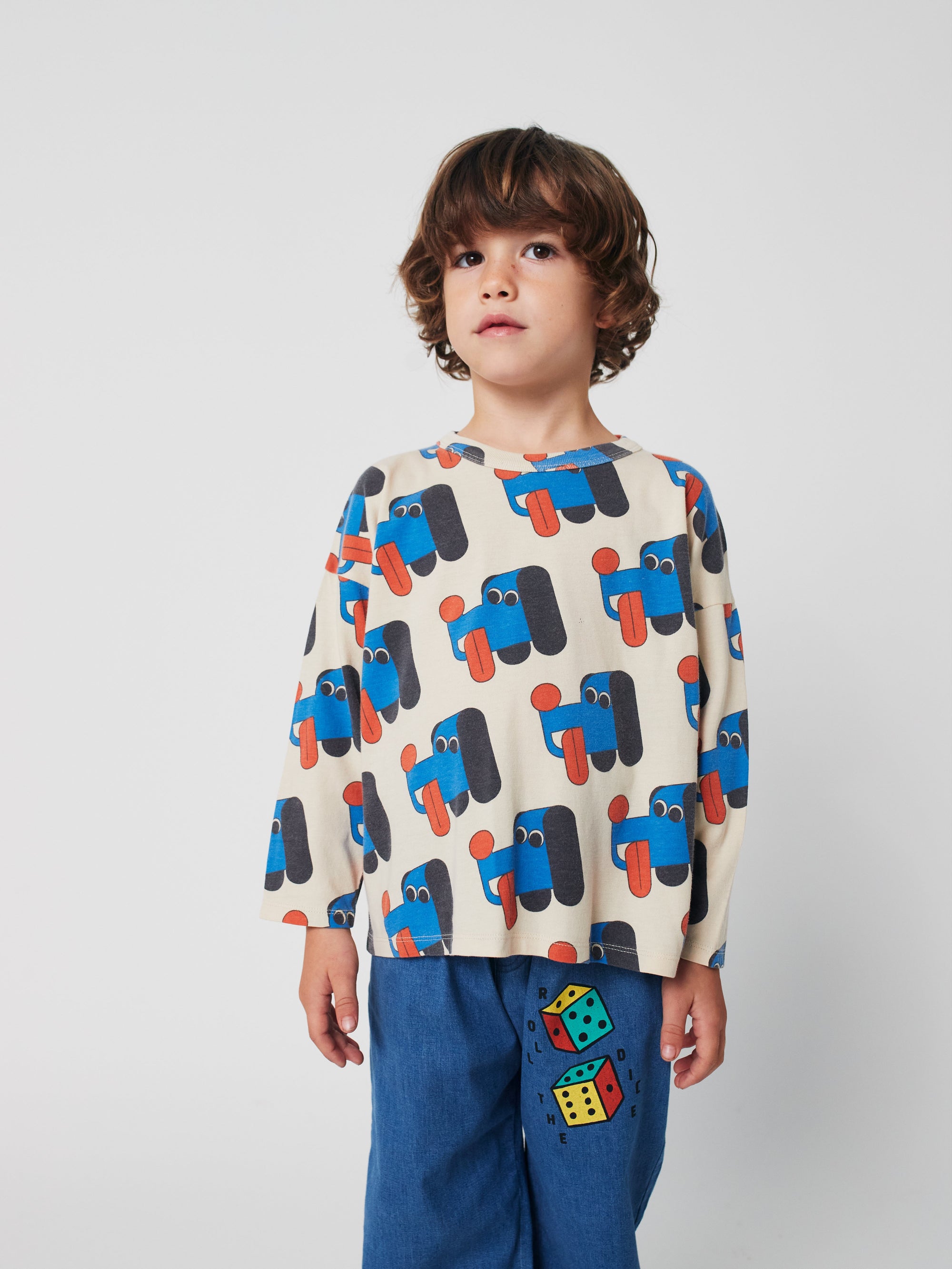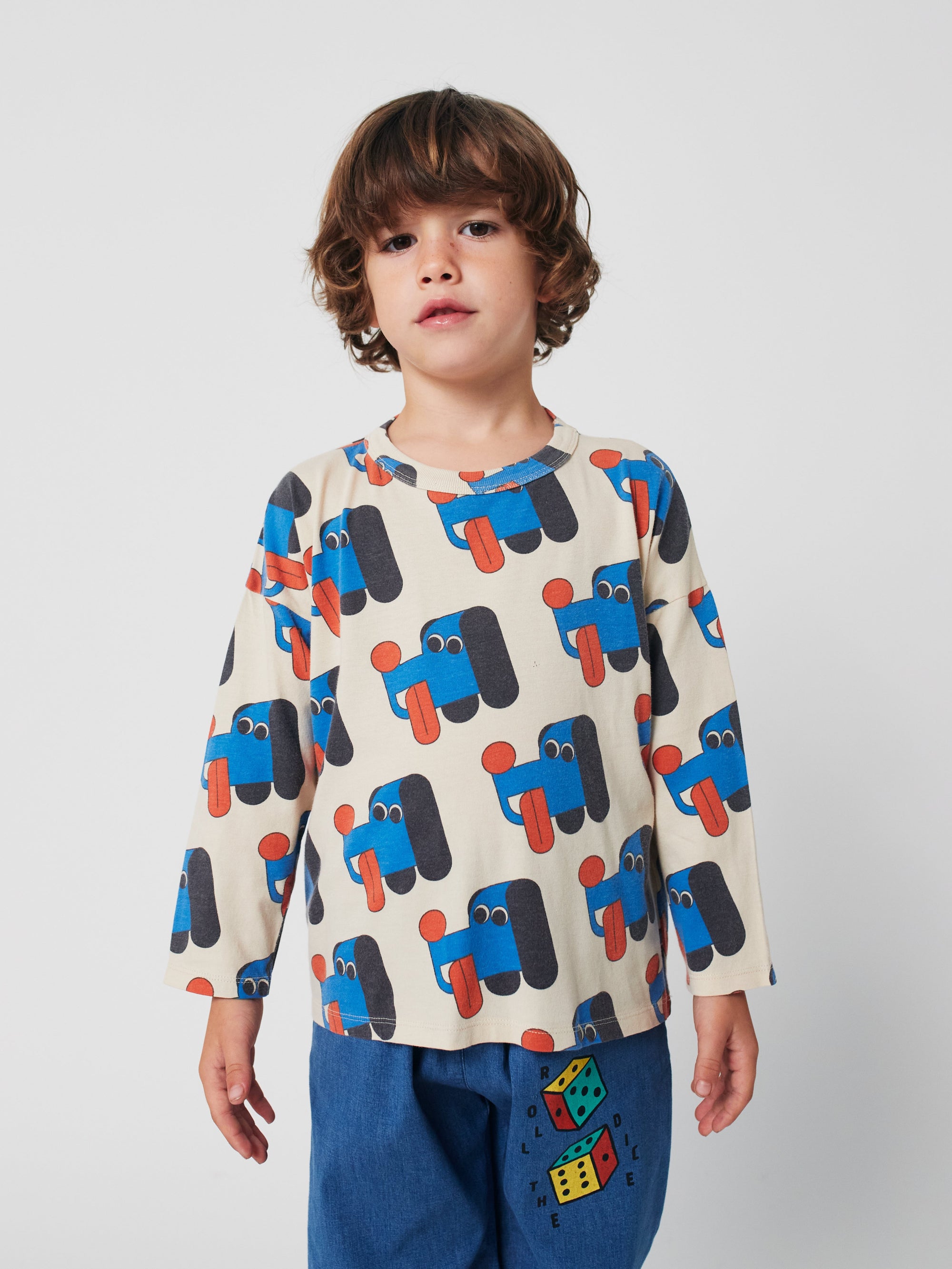 ナチュラルなオフホワイトが清潔感を漂わせるキッズ長袖Tシャツ。ルーズフィットのゆったりとしたシルエットで動きやすく、日常の遊びや通学にも快適に着られる一枚です。シンプルなラウンドネックがバランスよく仕上げられており、重ね着にも合わせやすい万能デザイン。