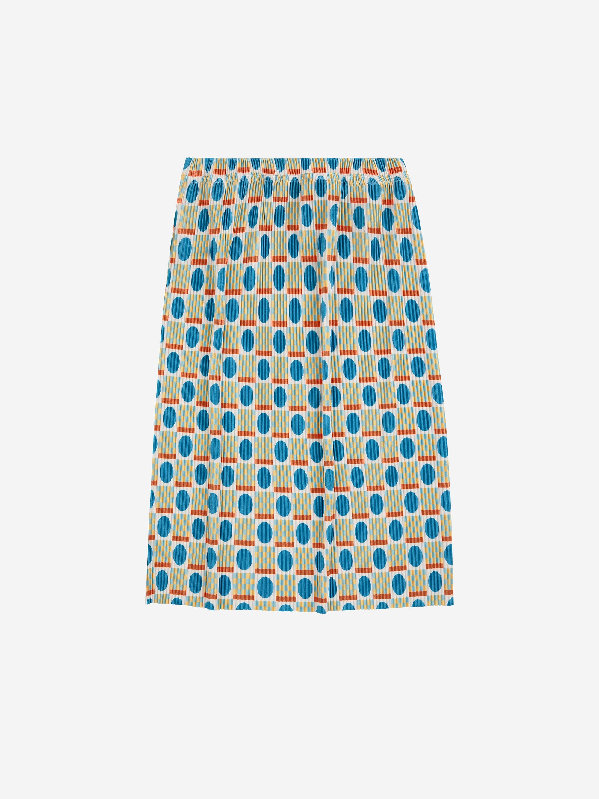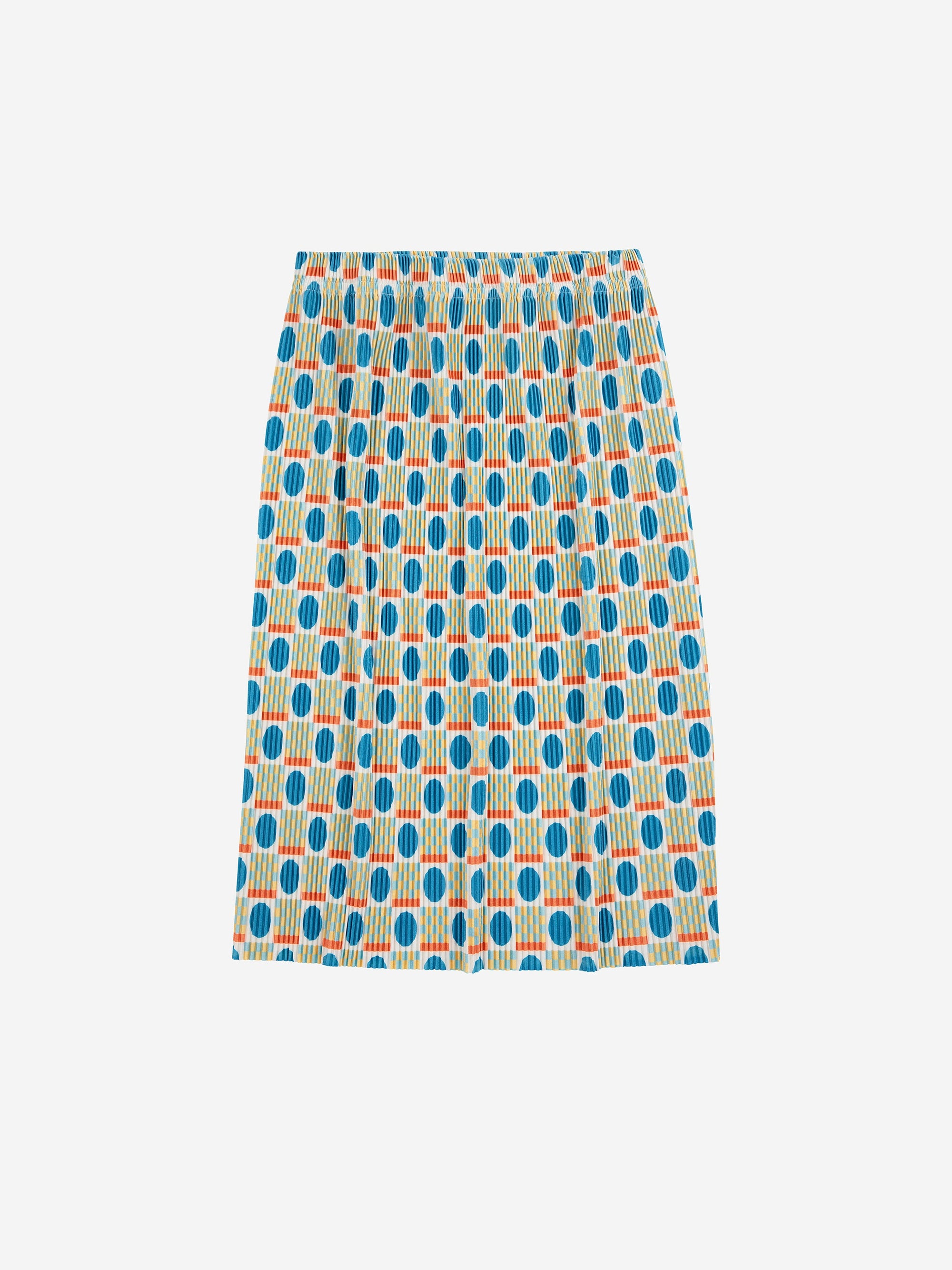 上品なオフホワイトが印象的なプリーツスカート。すっきりとしたスリムフィットのシルエットに、ひざ下丈のバランスで大人っぽさを演出します。ウエストはゴム仕様で快適なフィット感があり、着脱も簡単。プリーツが動くたびに軽やかに揺れ、シンプルながら華やかな雰囲気をプラスします。
