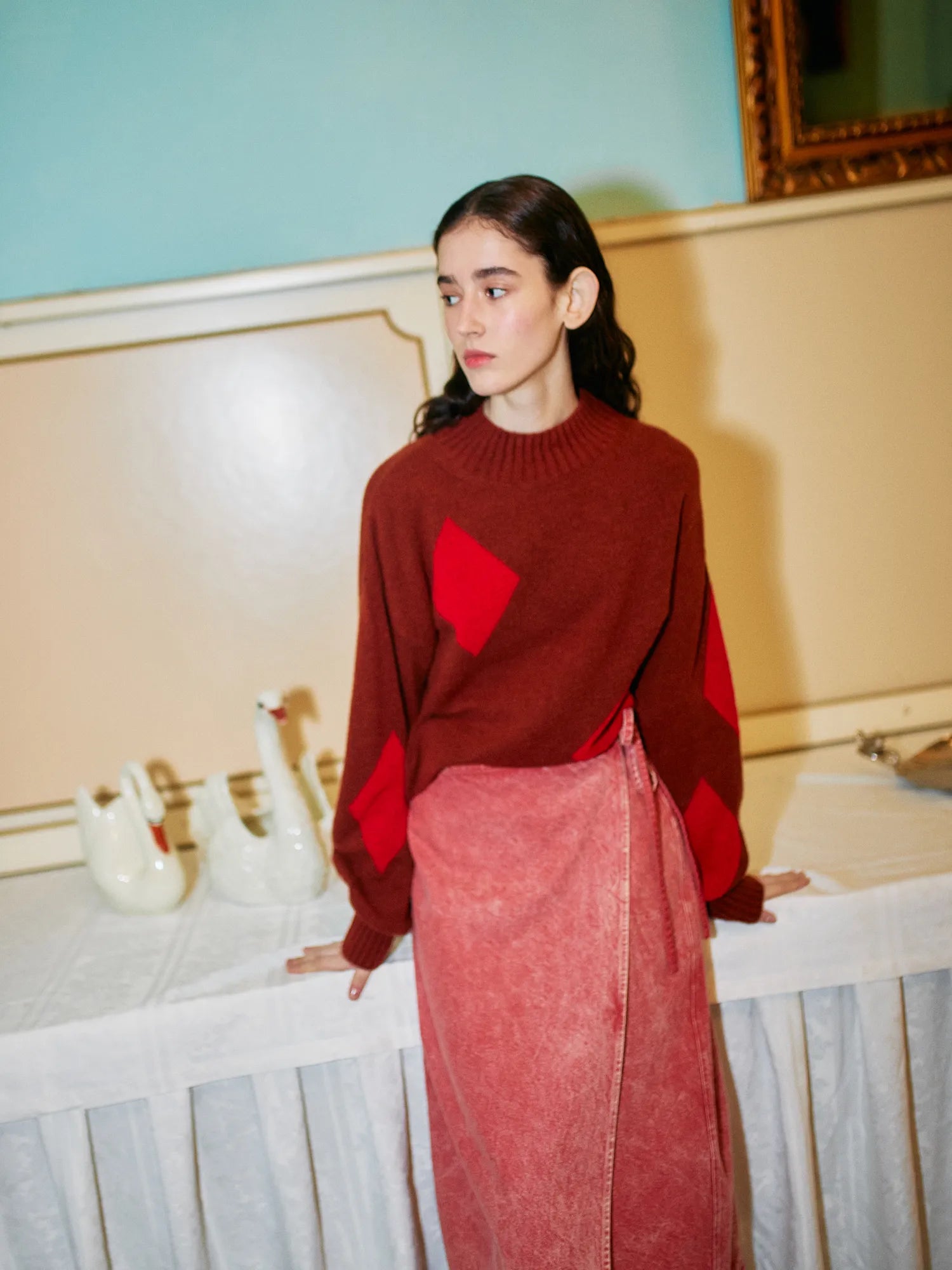 ブラウンのジャンパーは、ややゆとりのあるシルエットとドロップショルダーでリラックス感を演出したニットプルオーバー。複数の素材をブレンドすることで、軽やかさと柔らかさを兼ね備えた快適な着心地に仕上がっています。ウール混ならではのあたたかみがあり、季節の変わり目から冬場まで長く活躍いたします。