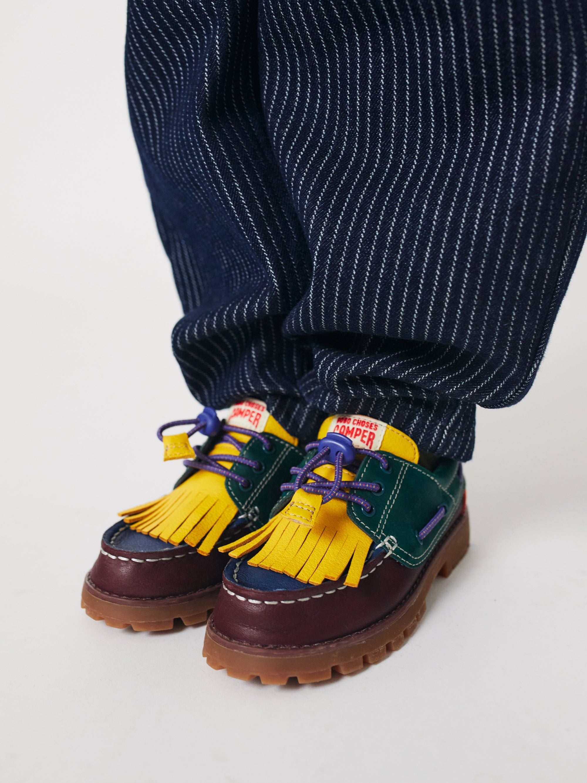 ボートシューズがボート専用でなければどうなる?宝探しや、水たまりをジャンプしたり、舗装道路が溶岩だと想像したりするためのものであれば?AW25では、私たち自身のBoboのひねりを加えたCamperのクラシックを再構築しました—カラフルなフリンジ、遊び心のある対比、そして「これらの靴は他とは違う」というおそらく明らかでないディテールを加えています。