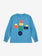 100% オーガニックコットン ライトブルーのTシャツ。長袖、リブ付きカフス、ゆったりとしたフィット感、ラウンドネックデザイン。スペイン製。