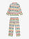 100%オーガニックコットンオフホワイトラウンジウェアセット。フラットカラー、長袖、フロントボタン留め、ゴムウエストバンド、ルーズフィット、ロング丈、ダブルコットン生地でデザインされています。スペイン製。