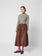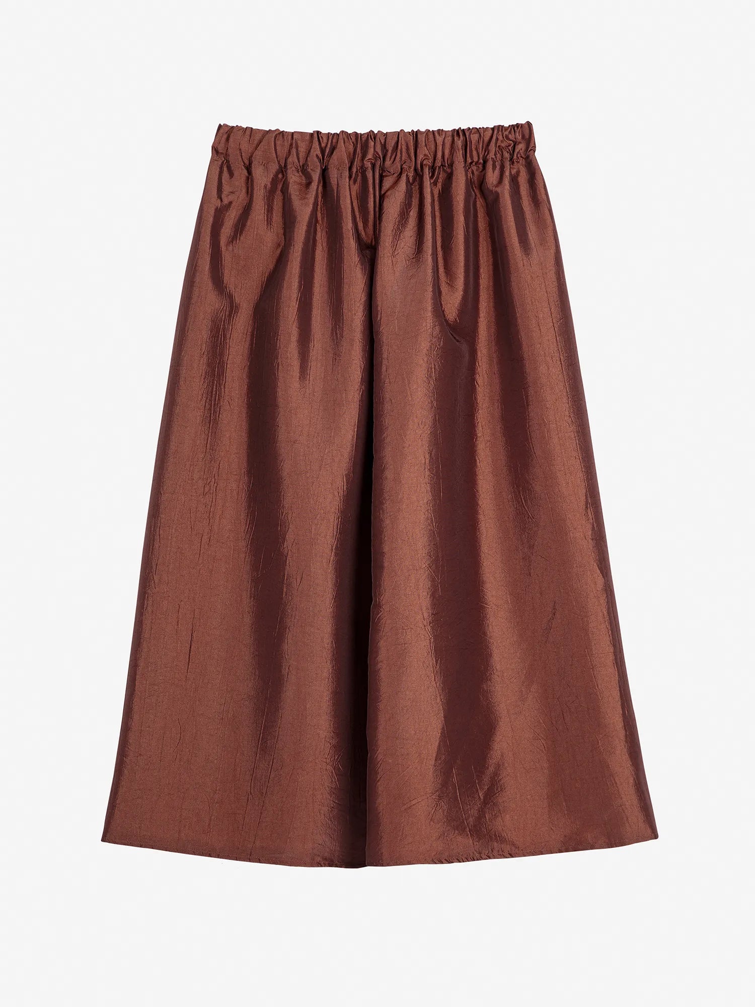 45%ポリアミド、55%ポリエステル ダークブラウンのスカート。ウエストにゴムを使用しており、柔軟なフィット感を実現したミディ丈、フレアカット / エヴァゼ、伸縮性のない軽量生地。サイズは通常通りで、サイズ感は正確です。スペイン製。