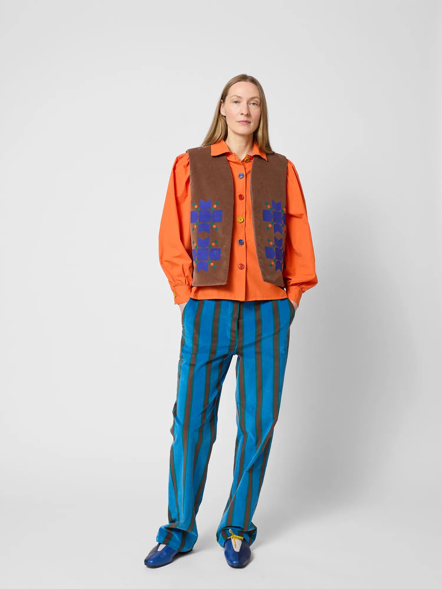 98% BCIコットン、2%エラスタン ダークブラウンのベスト。少しゆったりしたフィット感でデザインされています。サイズは通常通りで合います。スペイン製。