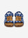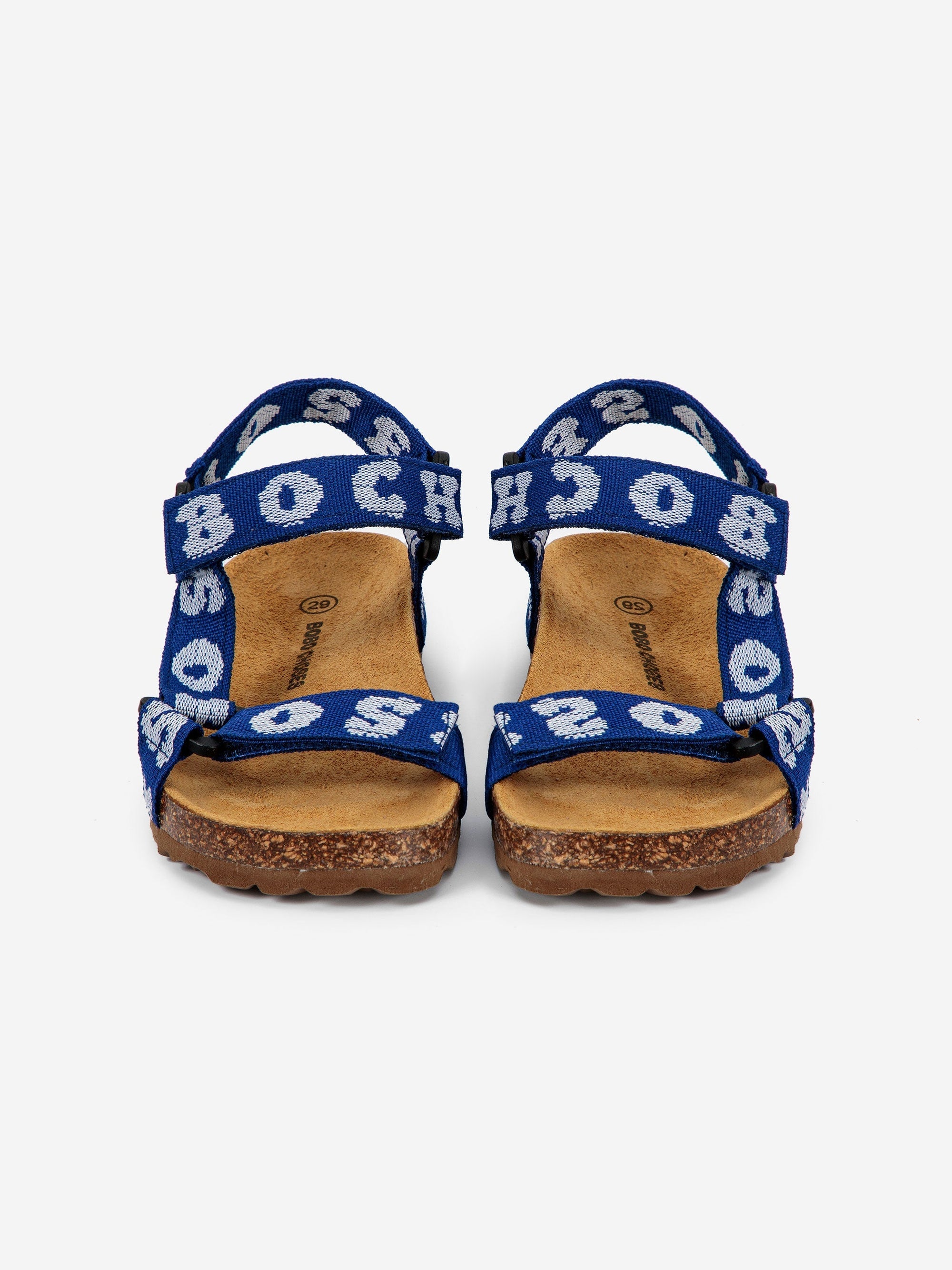 100%ポリエステル製のブルーサンダル。100%レザーのインソールと100%ラバーソールを採用。スペイン製。