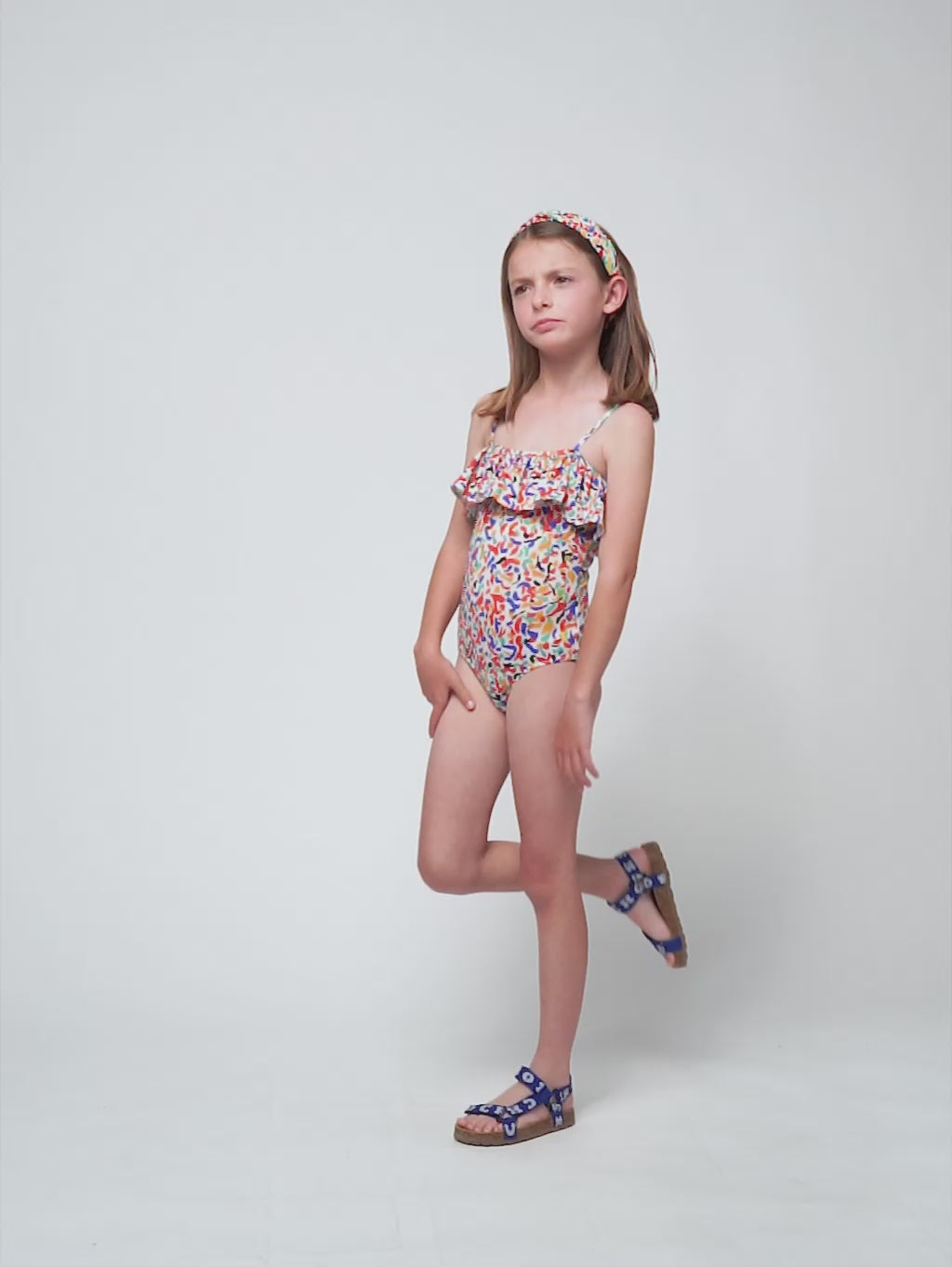 ポリアミド83%、エラスタン17%を使用したマルチカラーの水着。調節可能なストラップ、スリムフィット、シングルハンドル、フリルディテールが特徴です。スペイン製。