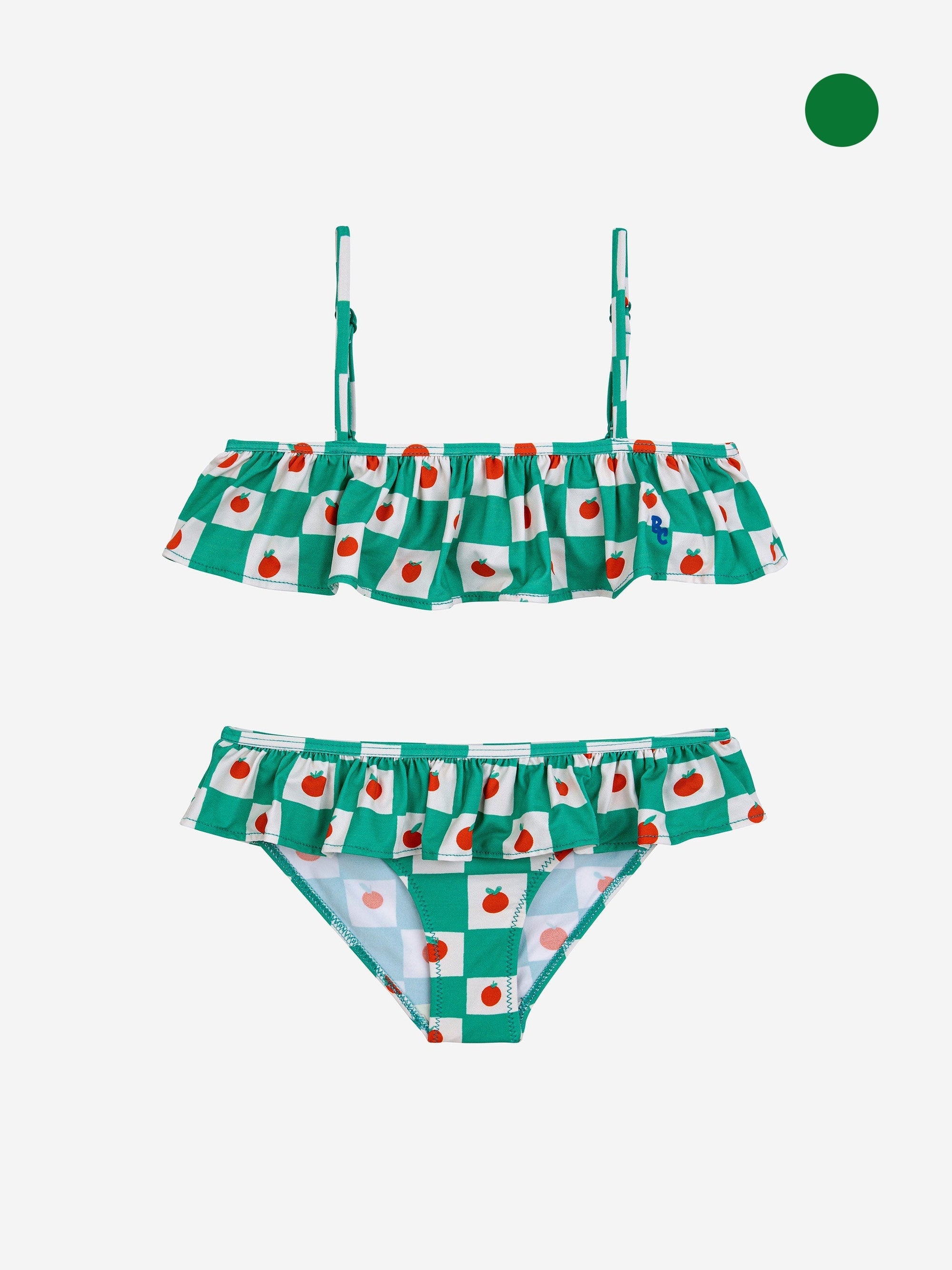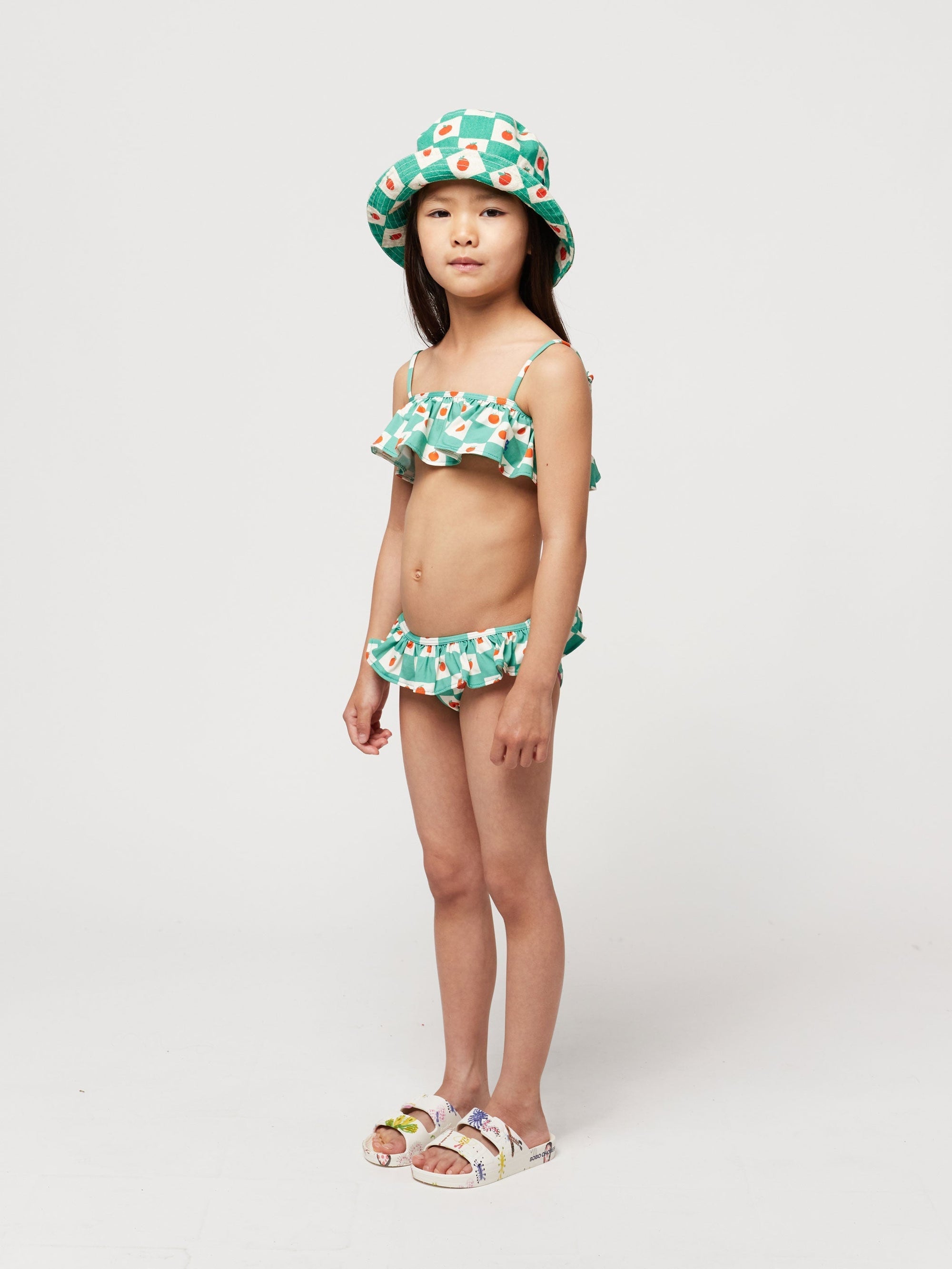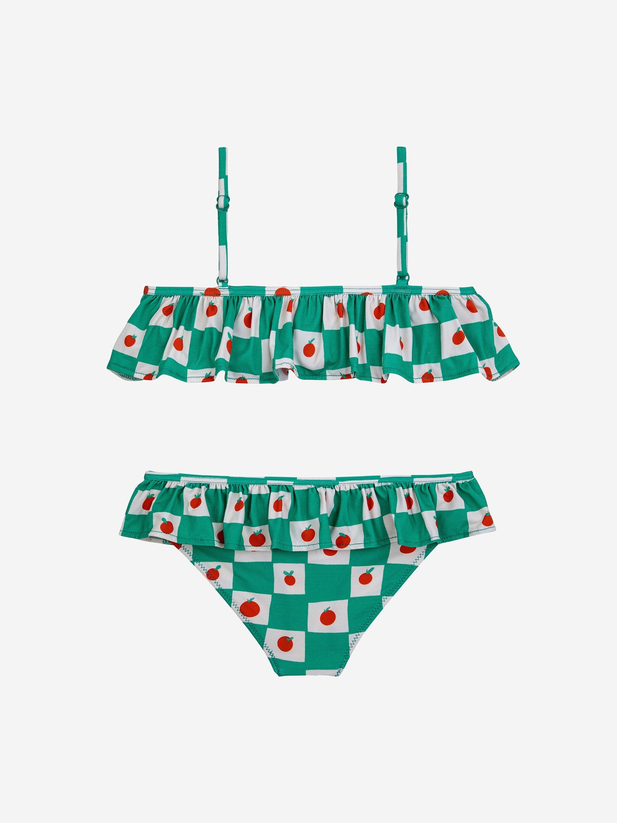 リサイクルポリアミド83%、エラスタン17%を使用したオフホワイトの水着。調節可能なストラップ、スリムフィット、レギュラー、シングルハンドル、フリルディテールが特徴です。スペイン製。