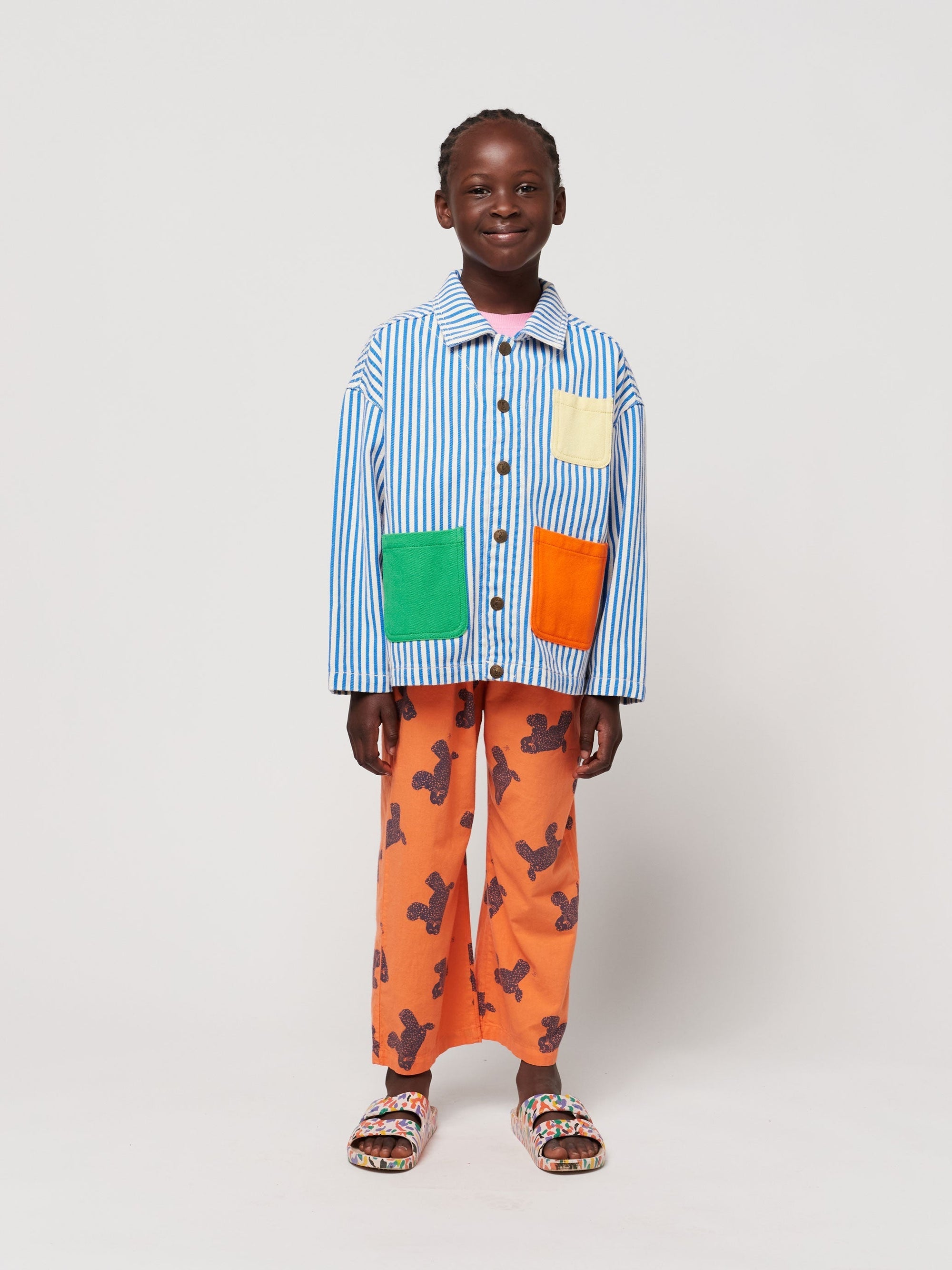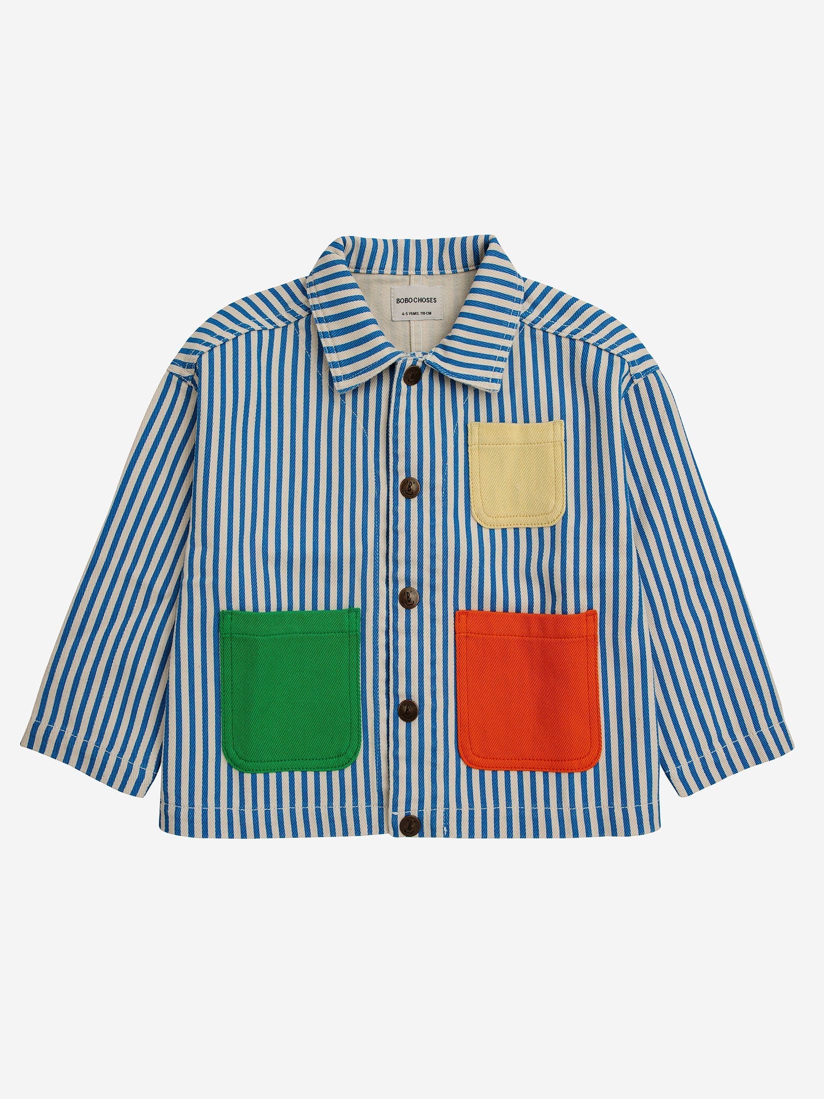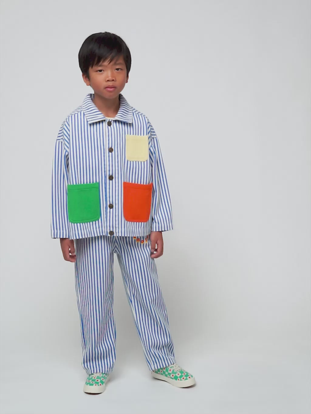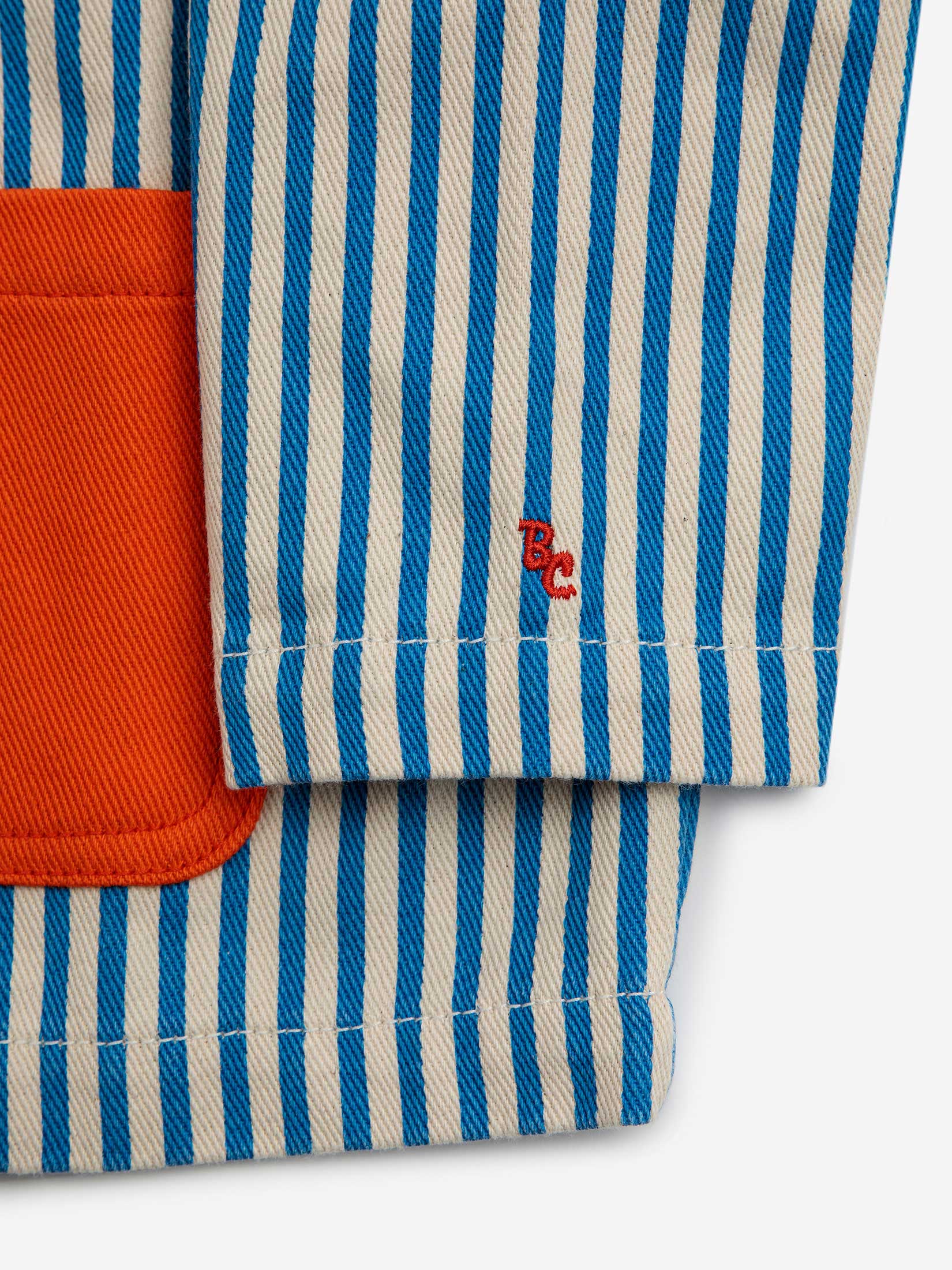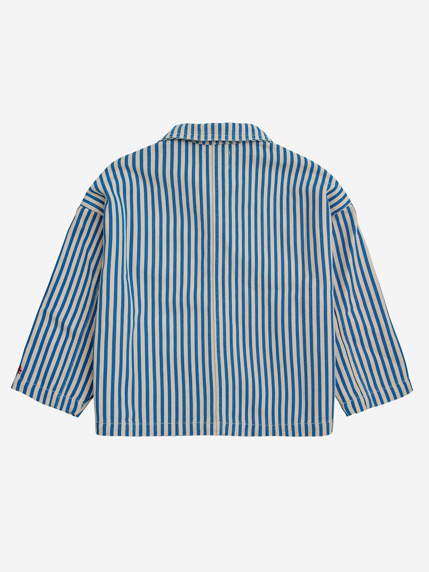 100% cotton blue outerwear. Designed with tailored collar, long sleeves, front snap fastening, patched chest pocket, embroidery, loose fit and patch pocket. Made in Portugal.