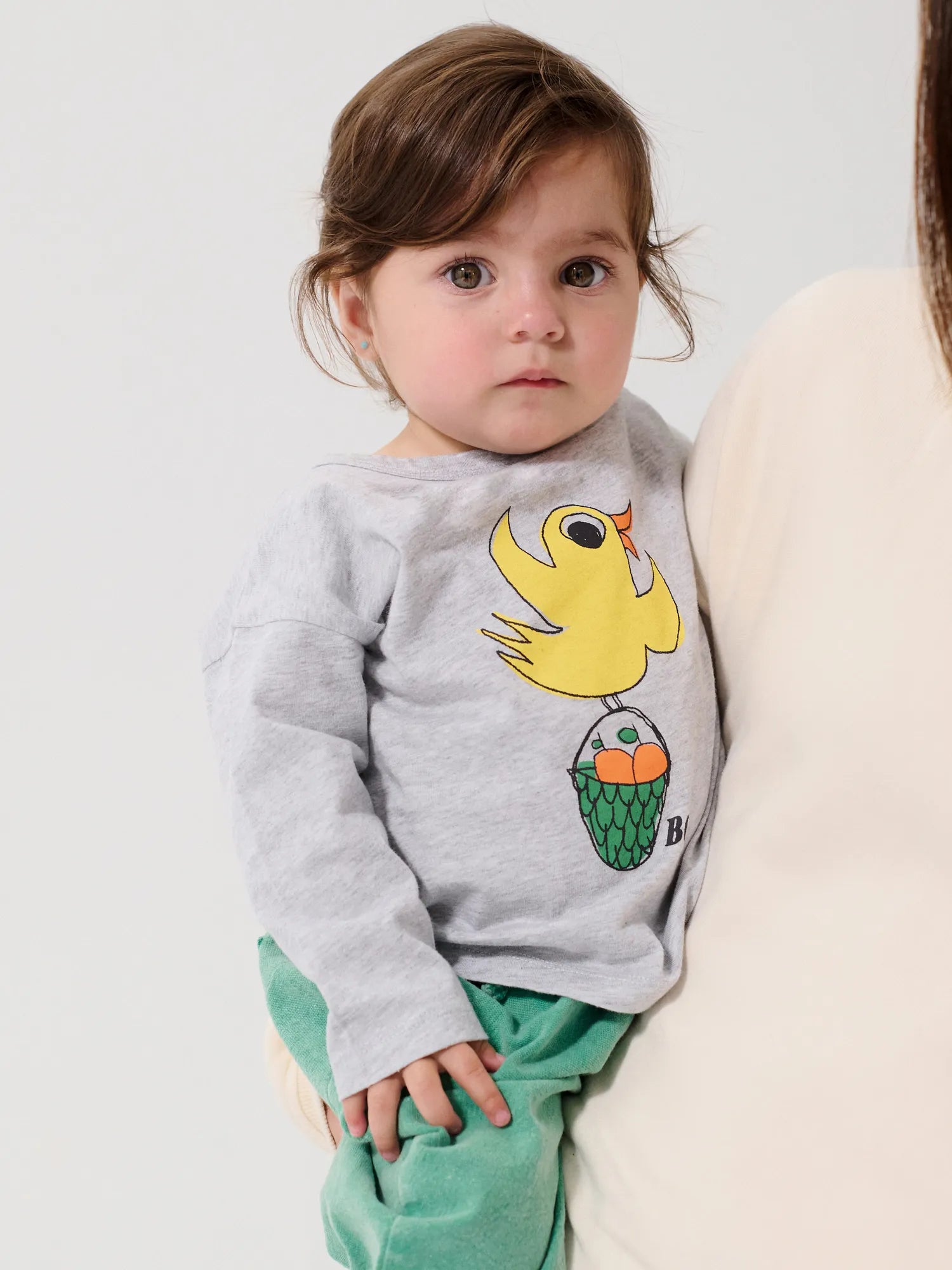 Heather grey t-shirt. Designed with long sleeves, dropped shoulder, shoulder snap fastening, loose fit and round neck. Made in Portugal.