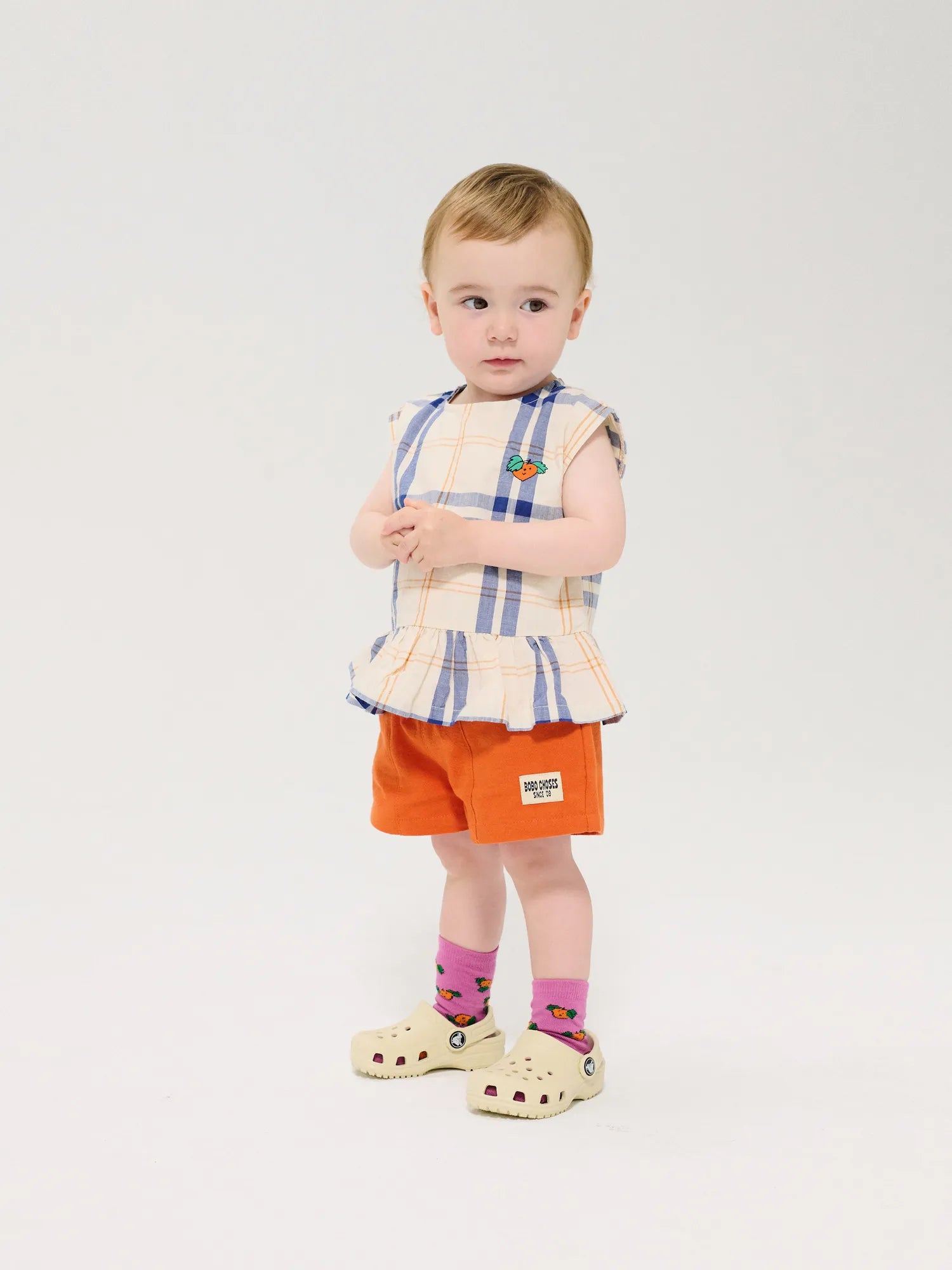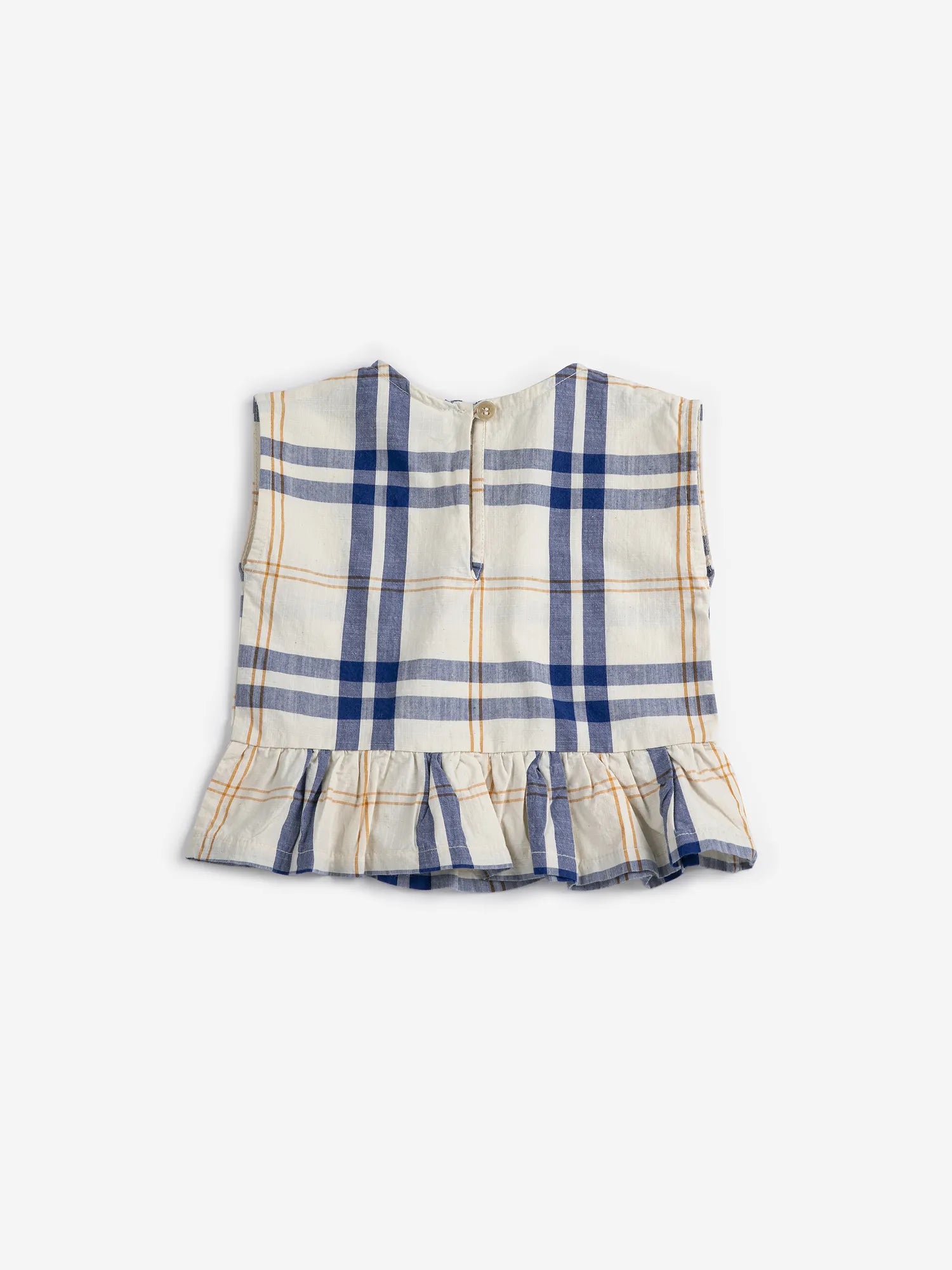 Multicolor shirt. Designed with sleeveless, back button fastening, embroidery, loose fit, round neck and ruffled detailing. Made in Spain.
