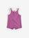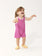 Fuchsia playsuit. Designed with sleeveless, front snap fastening, crotch snap fastening, embroidery, loose fit, over knee length and round neck. Made in Spain.