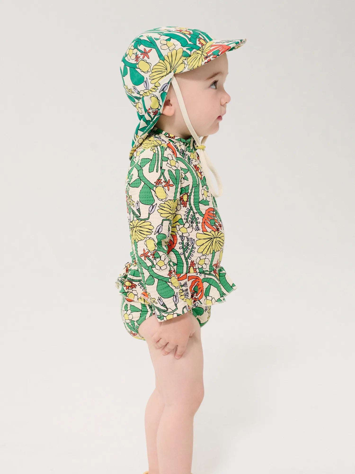 Multicolor swim culotte. Designed with long sleeves, zipped, slim fit, high neck, ruffled detailing and solar protection. Made in Spain.