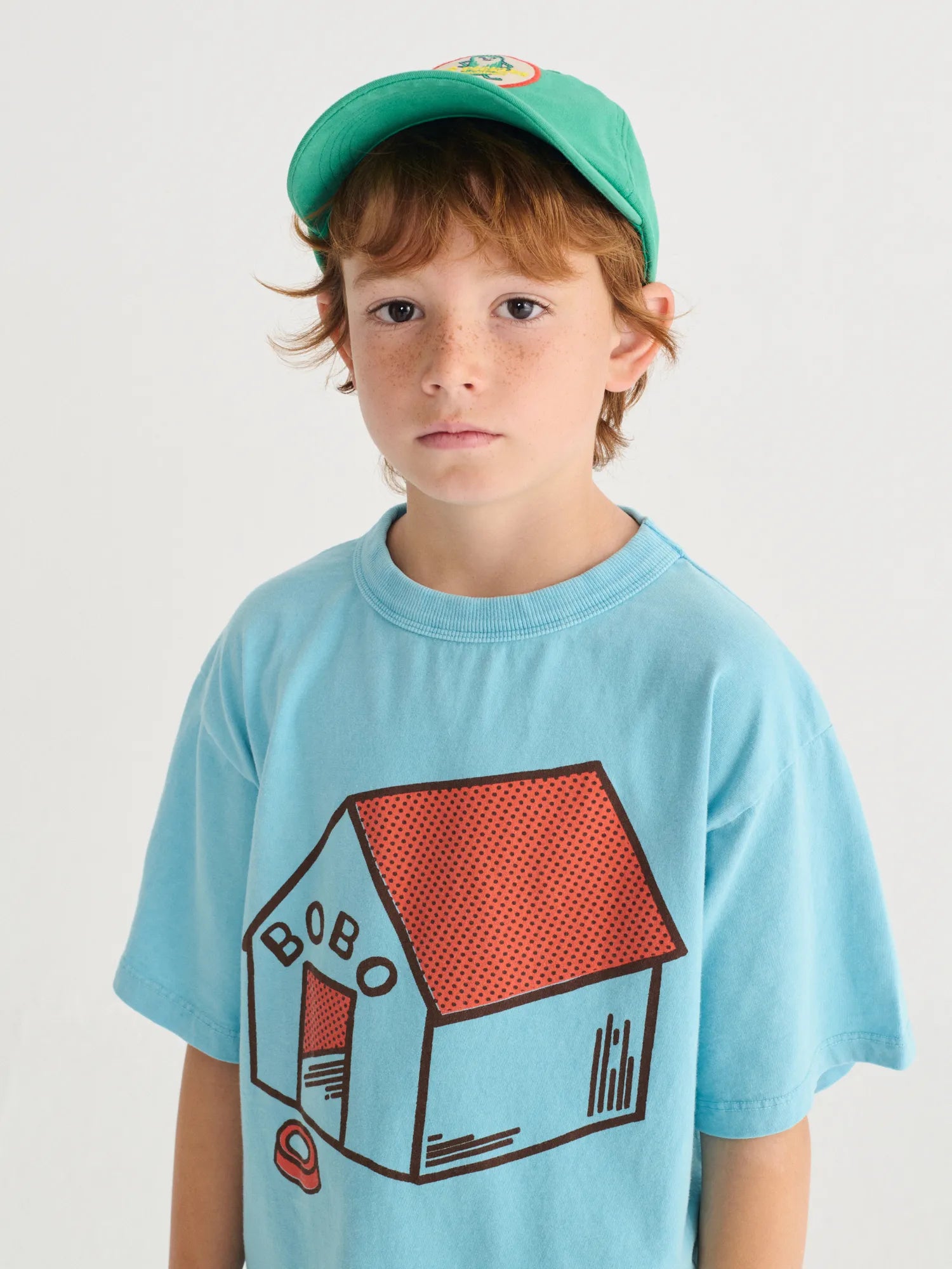Light blue t-shirt. Designed with short sleeves, loose fit and round neck. Made in Spain.