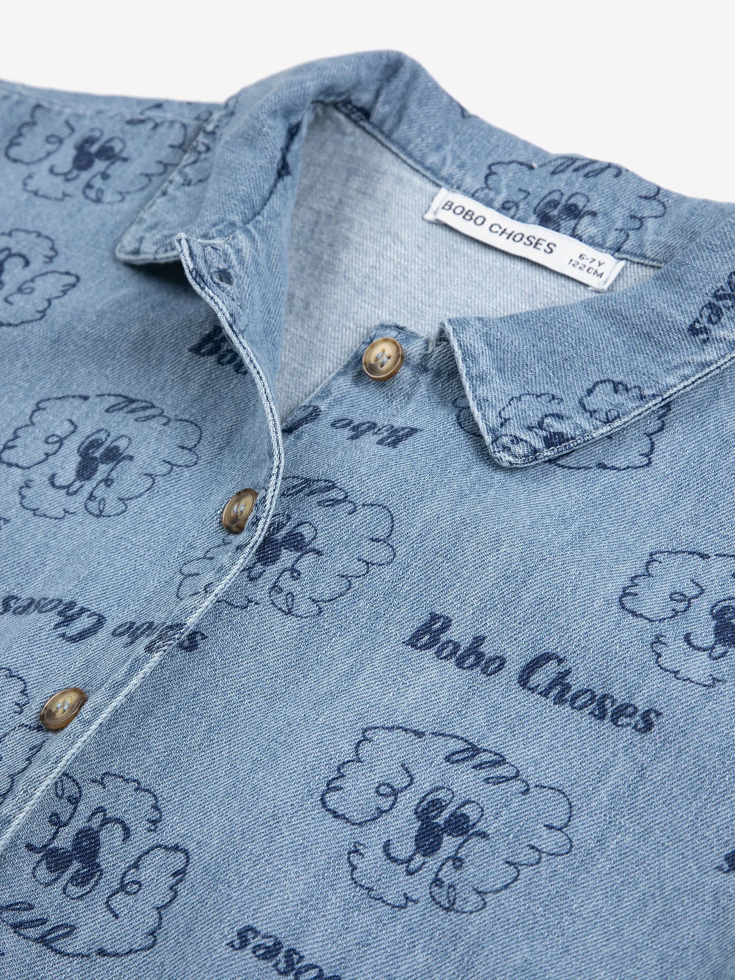 Prussian blue shirt. Designed with tailored collar, short sleeves, front button fastening, loose fit and denim. Made in Spain.