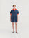 Navy blue dress. Designed for a relaxed fit, mini length, flared cut / evasé, non stretchy fabric and designed with pockets. Fits true to size, take your normal size. Made in Spain.