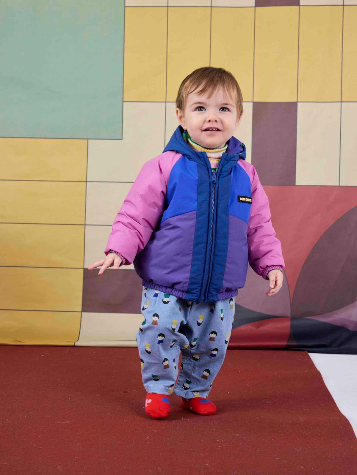 Multicolor anorak. Designed with hooded, long sleeves, raglan sleeves, zipped, elasticated bottom, elasticated cuffs, pipped pocket, embroidery, ligth padded, reversible, seam pocket and relaxed fit. Made in China.