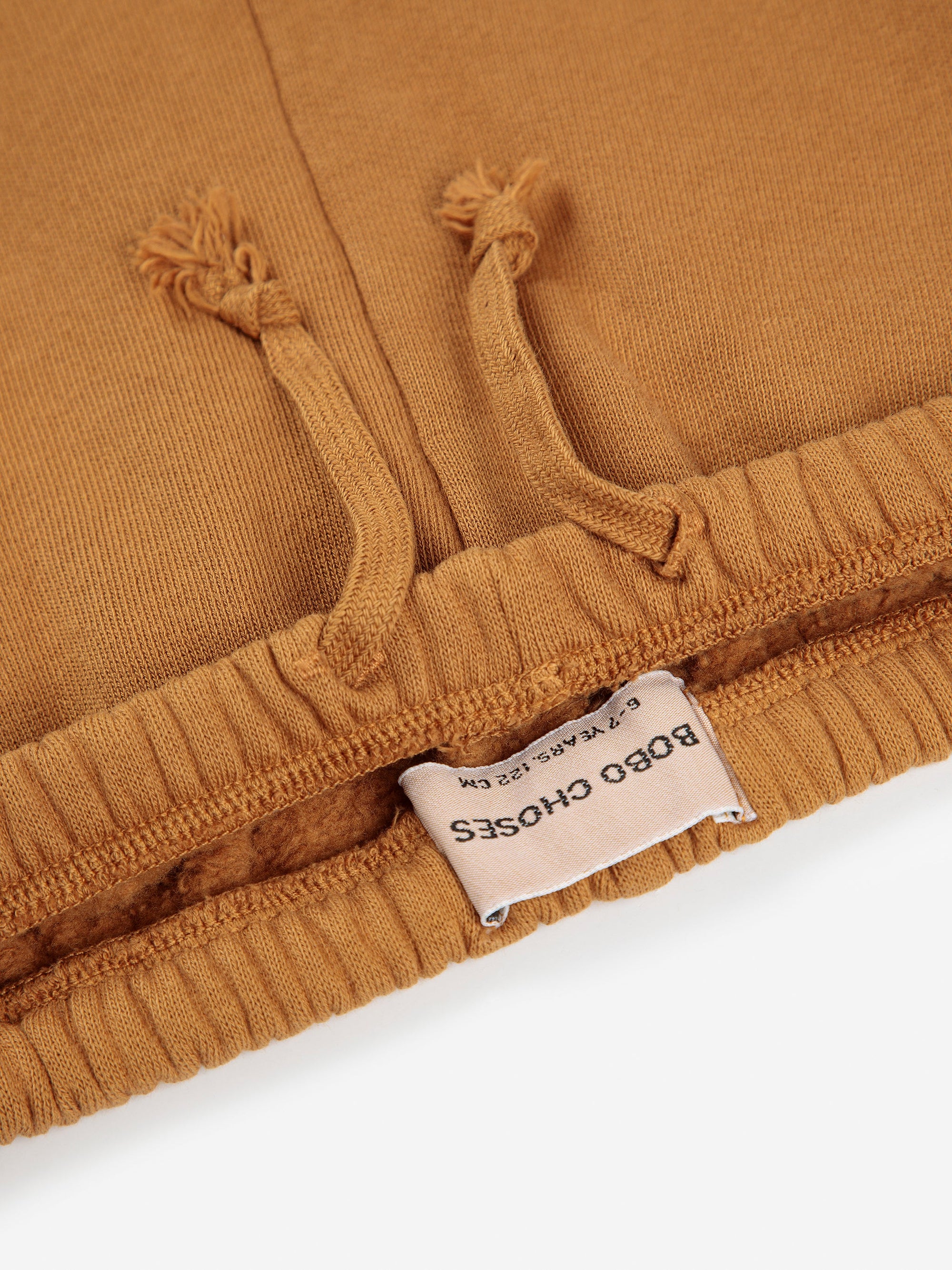 Brown pants. Designed with elasticated bottom, elasticated waistband, loose fit, adjustable drawstring, long length, patch pocket, seam pocket and inner brush fleece. Made in Spain.