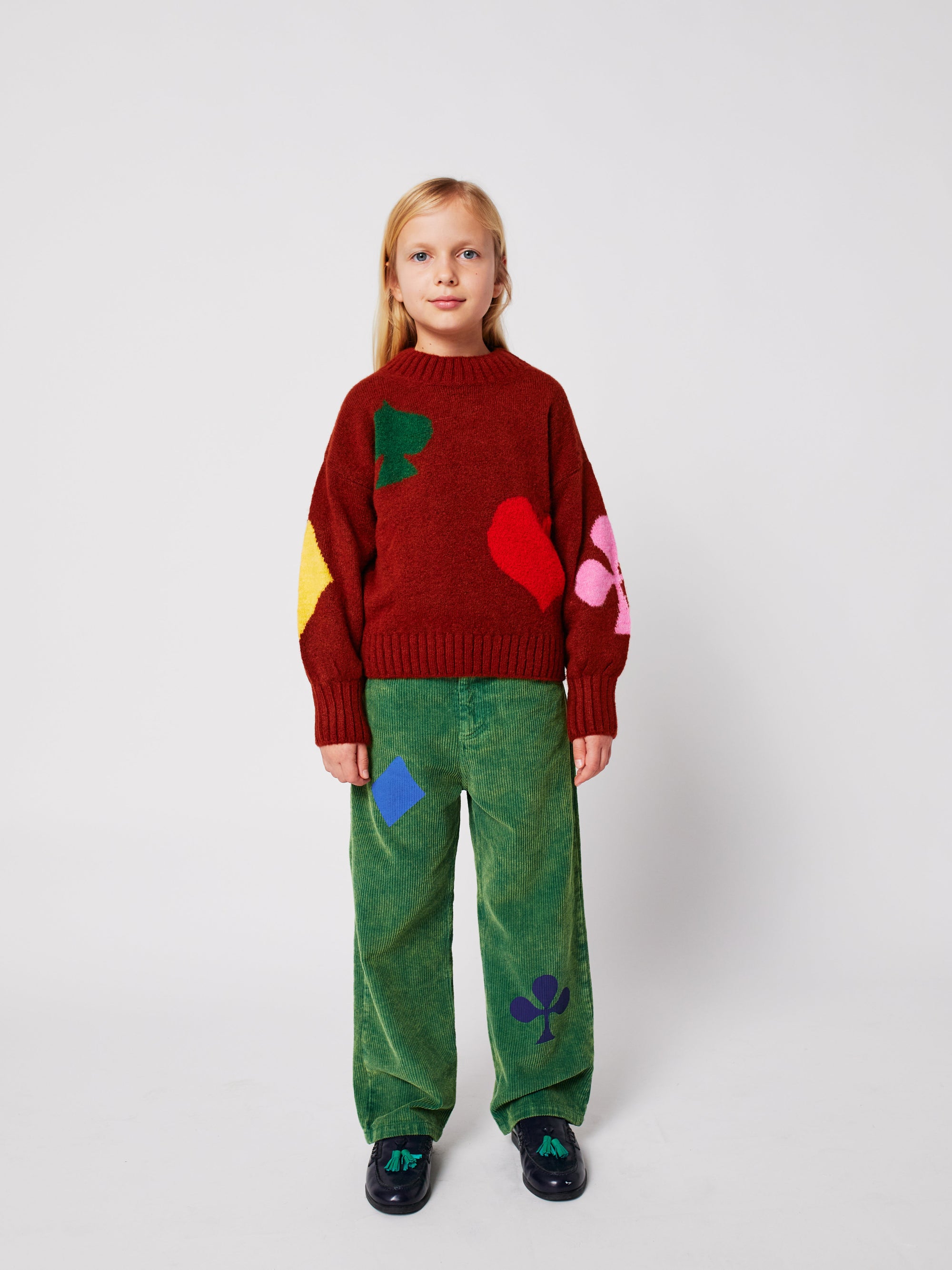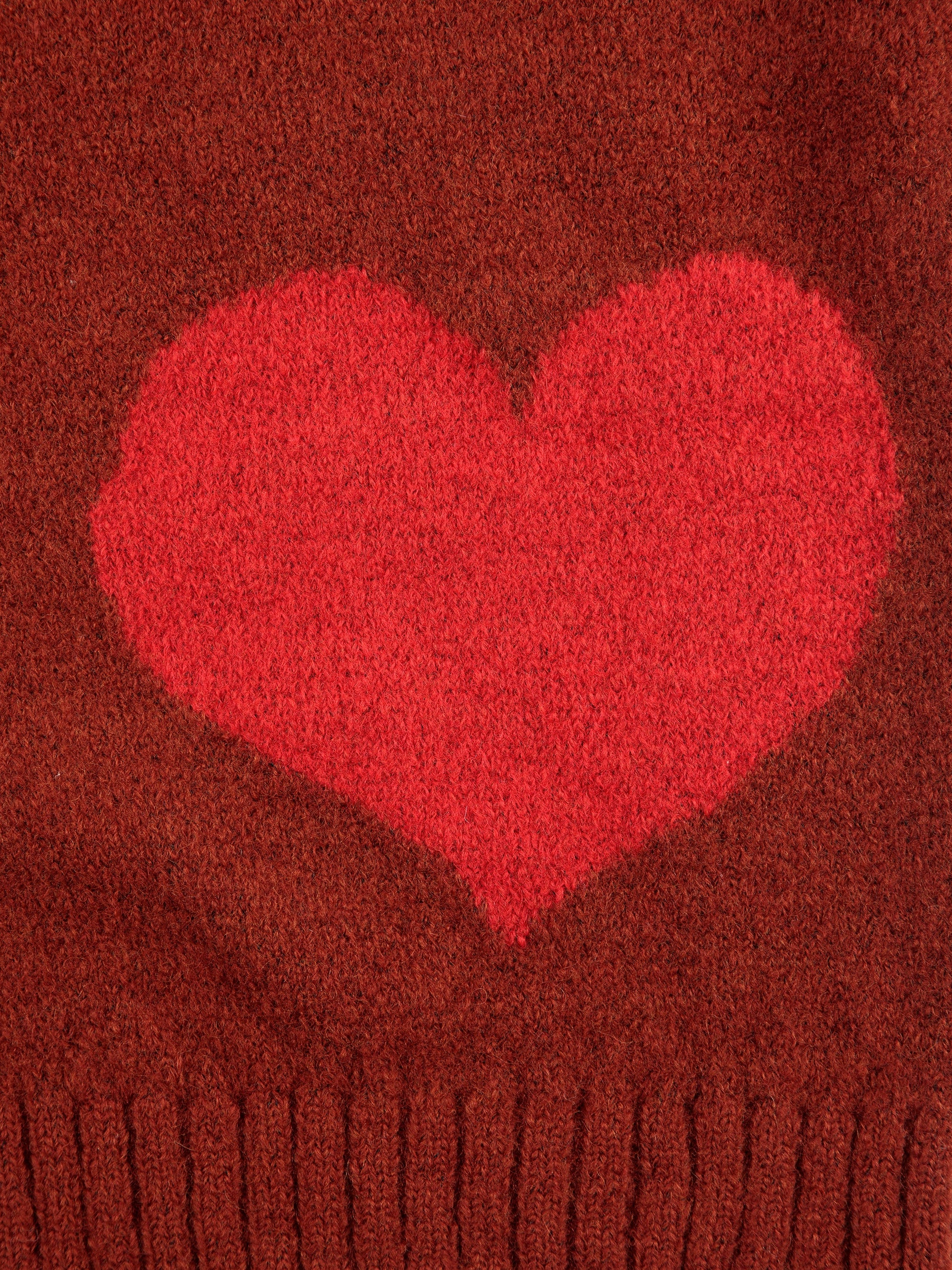 Burgundy red jumper. Designed with long sleeves, ribbed cuffs, intarsia, loose fit, ribbed bottom and high neck. Made in Spain.