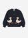 Navy blue cardigan. Designed with crew neck, long sleeves, front button fastening, ribbed cuffs, embroidery, intarsia, loose fit and ribbed bottom. Made in Portugal.