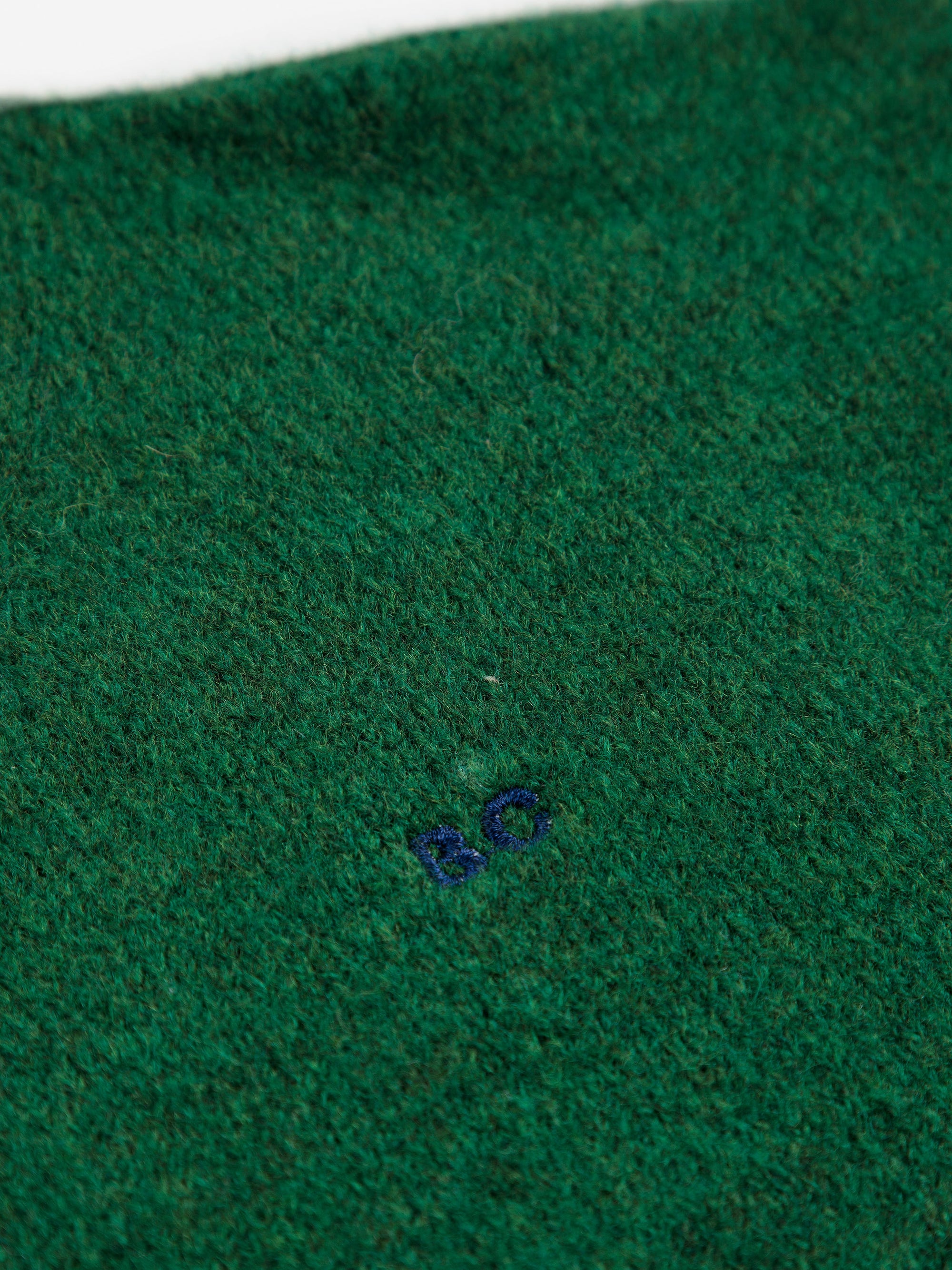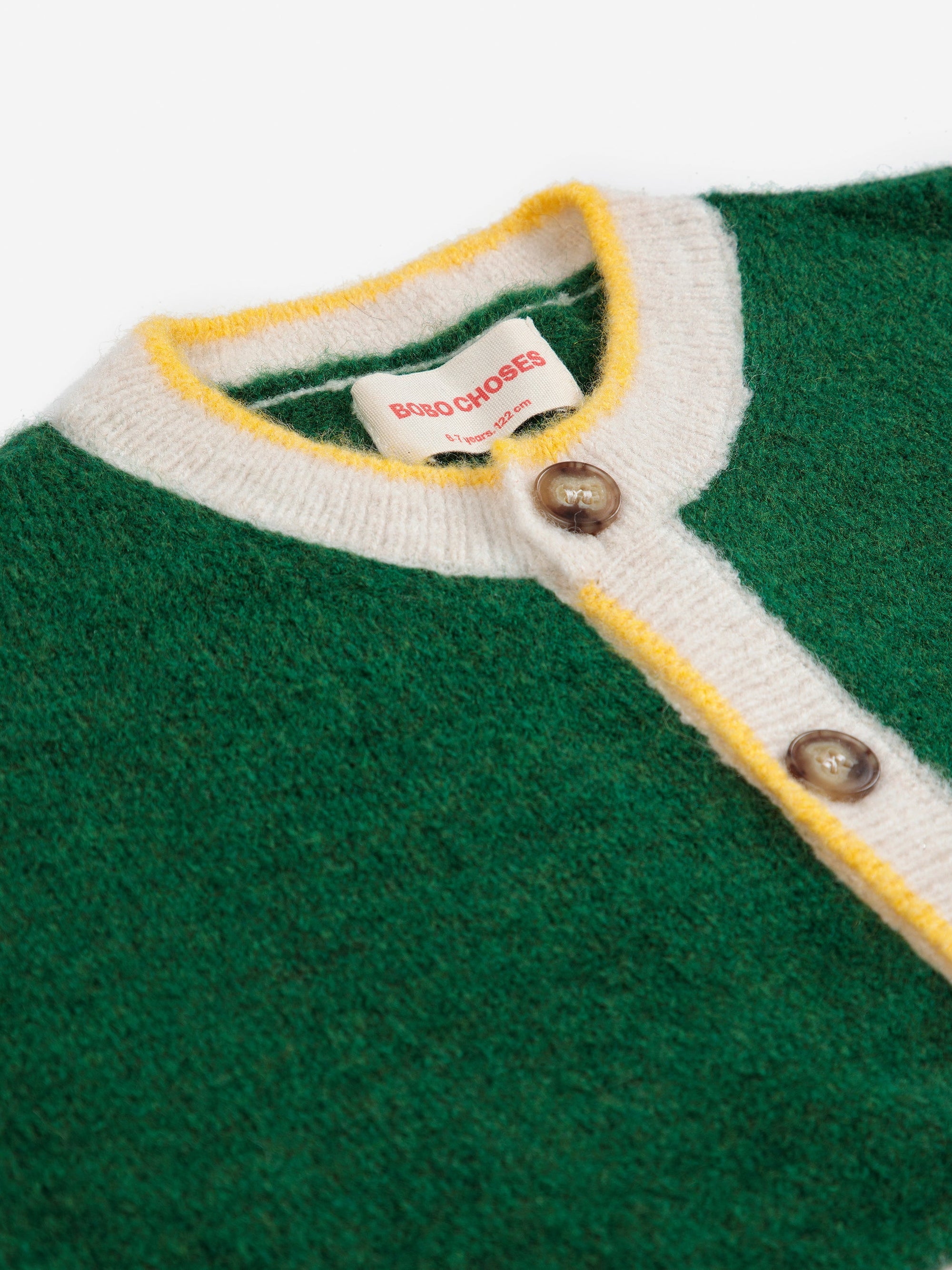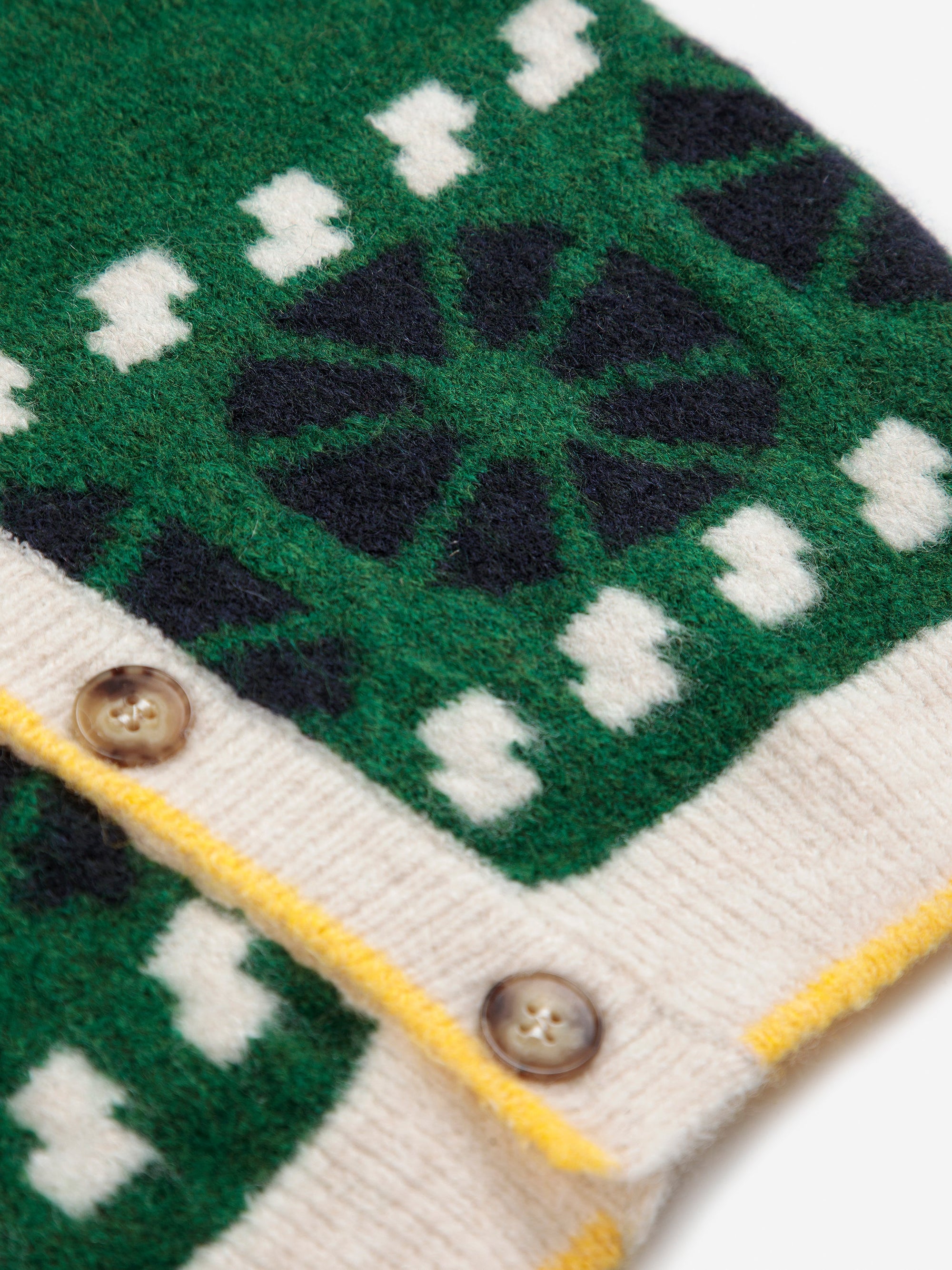 Green cardigan. Designed with crew neck, long sleeves, front button fastening, ribbed cuffs, embroidery, intarsia, chunky knit, loose fit and ribbed bottom. Made in Spain.