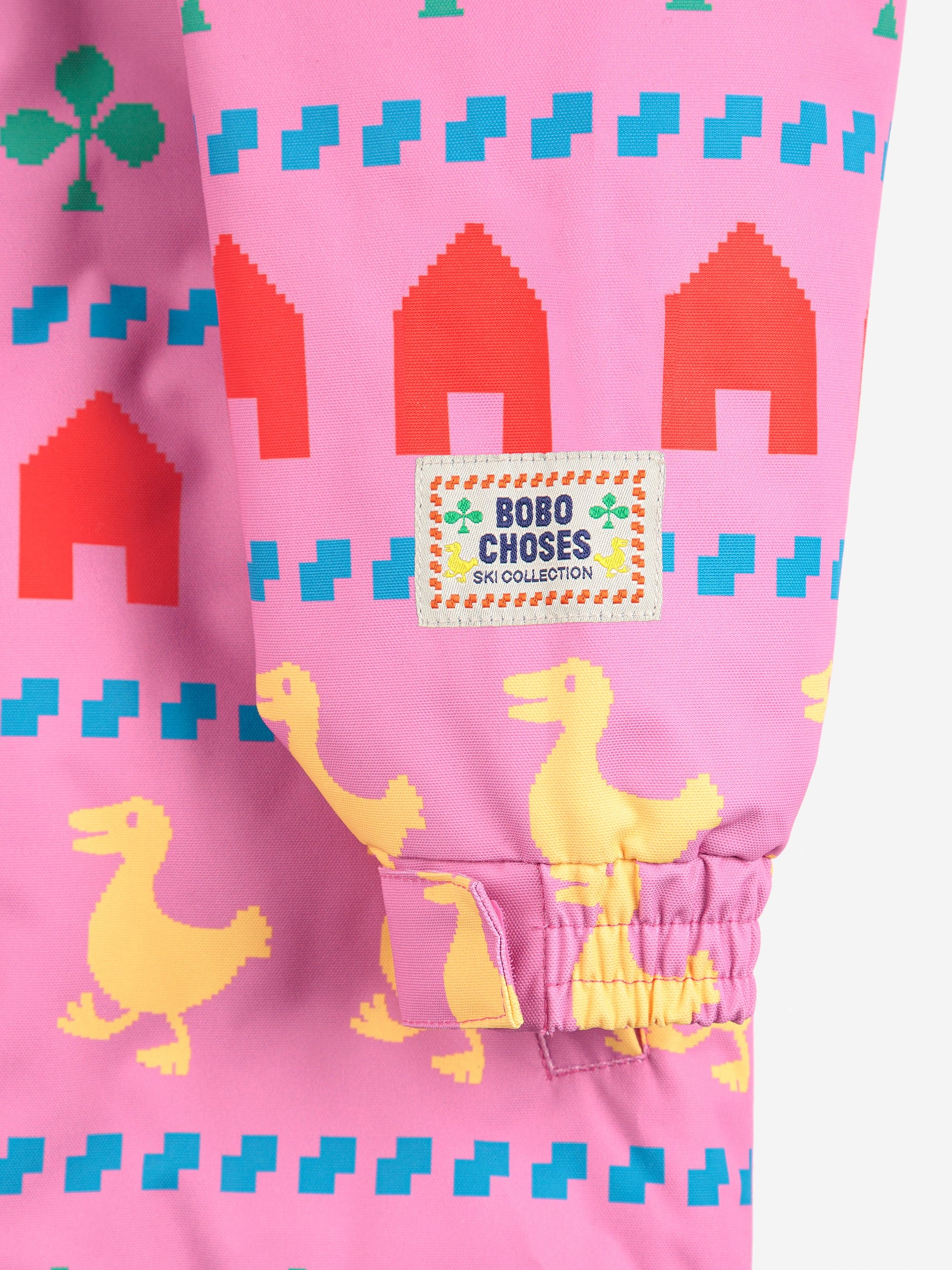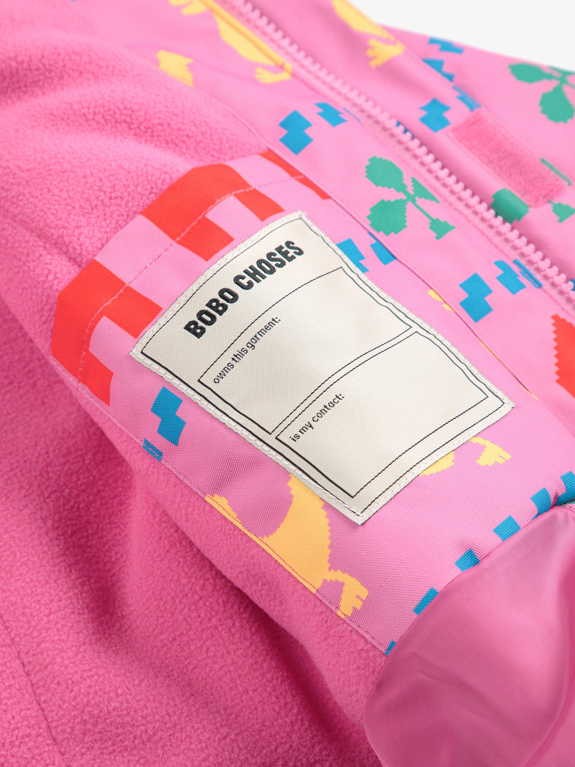 Fuchsia anorak. Designed with hooded, long sleeves, front snap fastening, front zip fastening, elasticated bottom, elasticated cuffs, multi-pockets, patch, heavy padded, adjustable bottom, adjustable cuff, recycled lining, high neck and relaxed fit. Made in China.