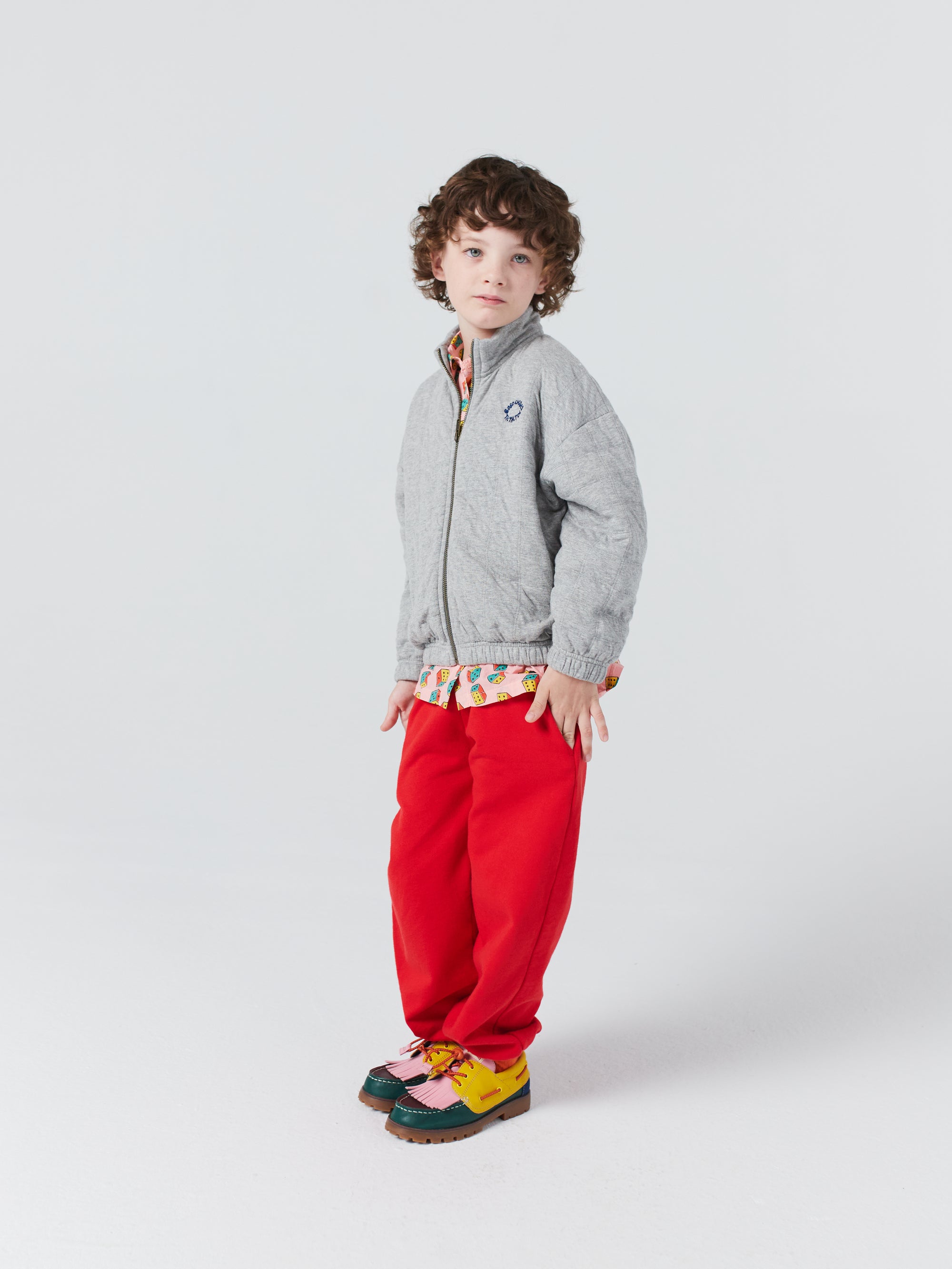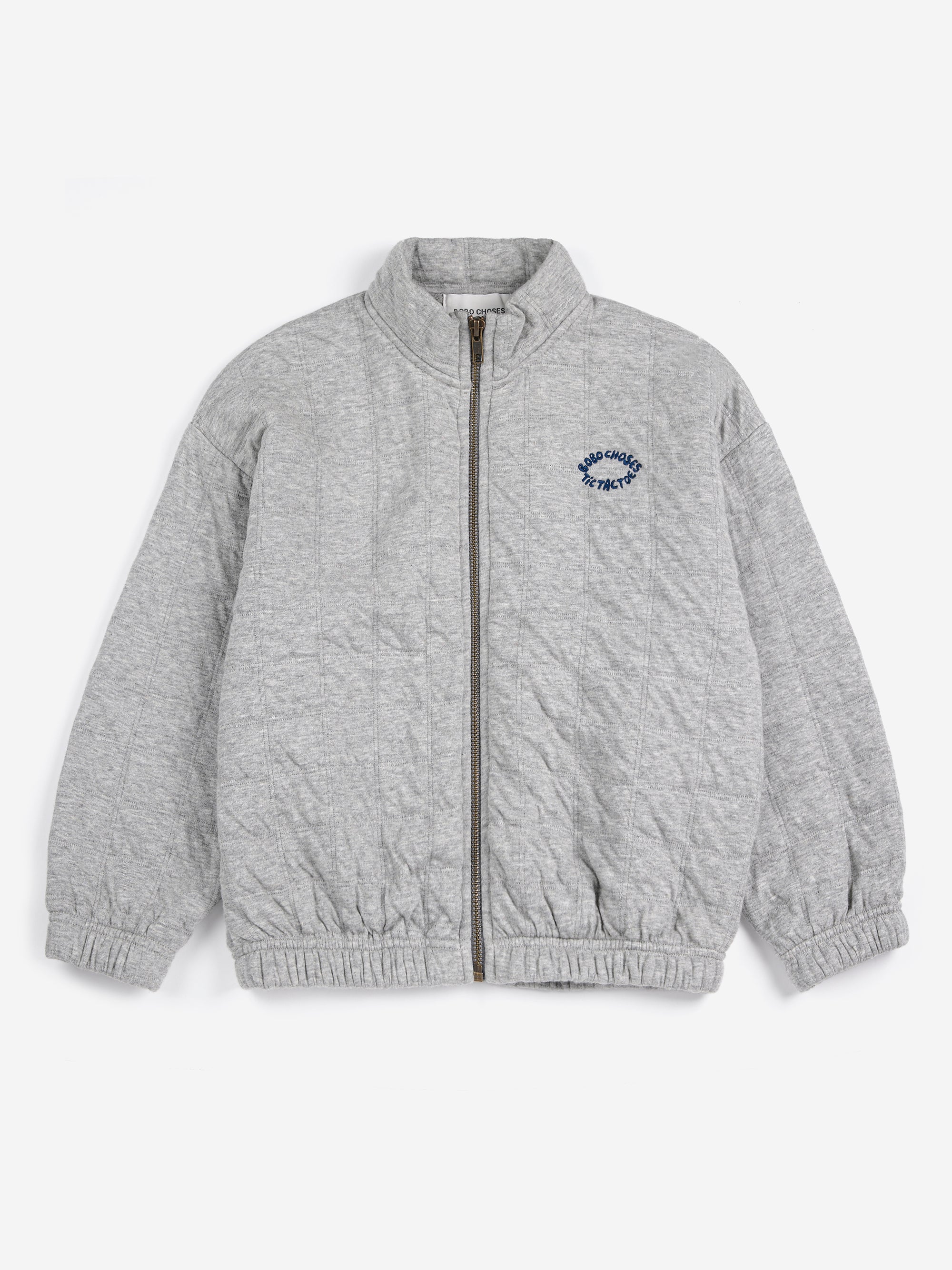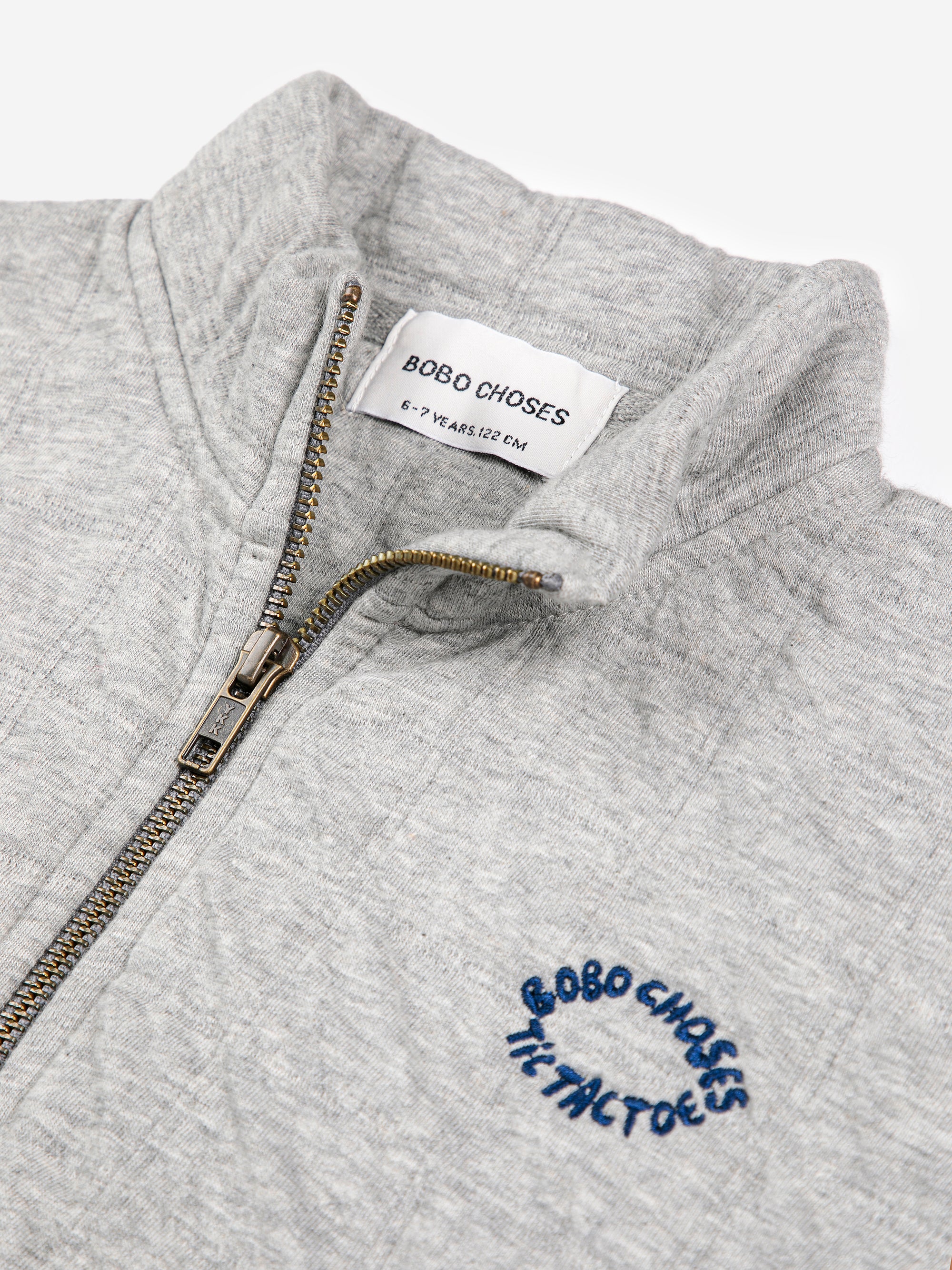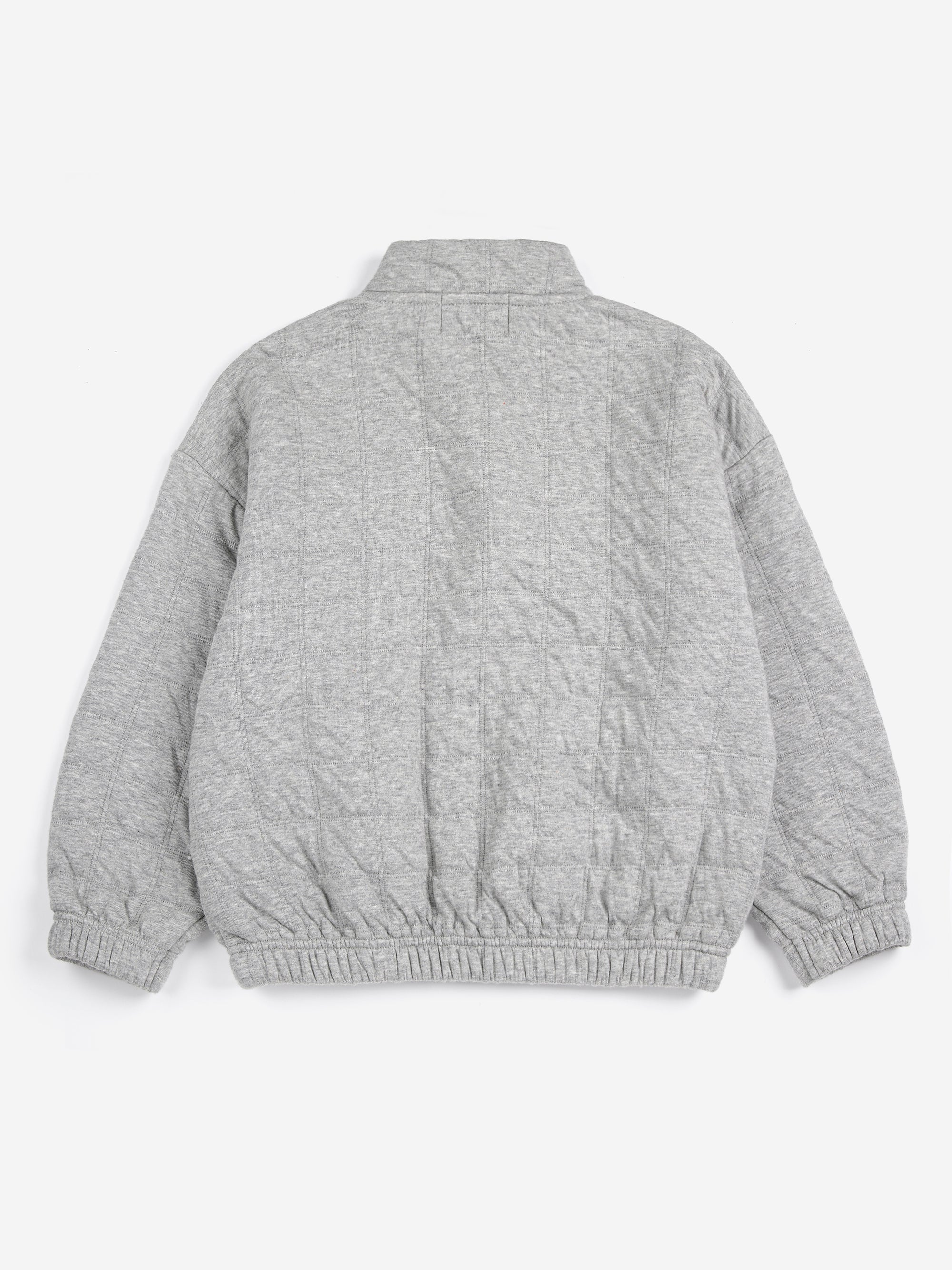 Heather grey sweatshirt. Designed with zipped, elasticated bottom, elasticated cuffs, embroidery, loose fit, high neck, quilted padded and seam pocket. Made in Portugal.