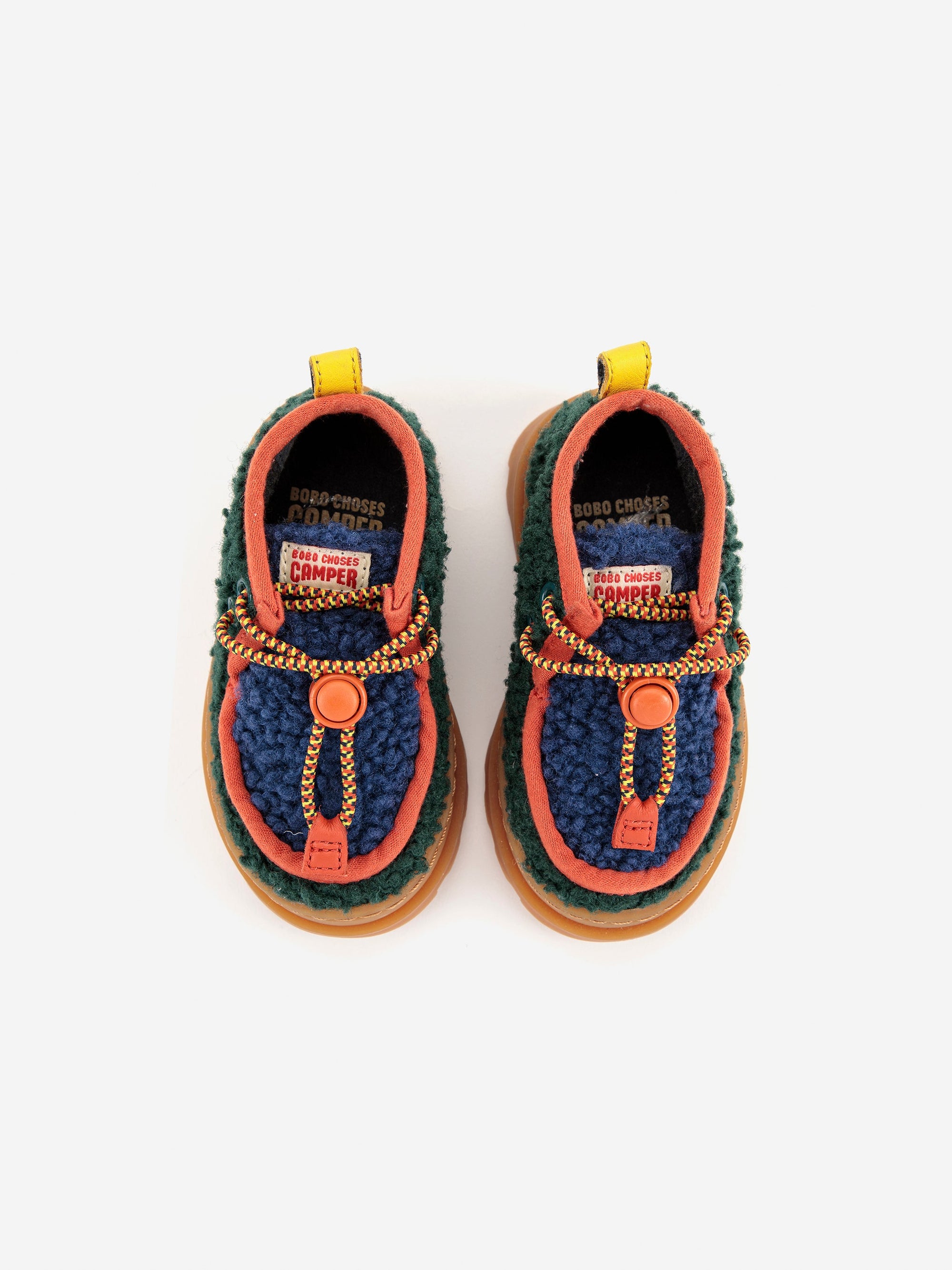 Big boots for little steps. BRUTUS is Camper’s iconic boot, reimagined for first adventures—those wobbly, fearless, wonderful first walks. Cozy on the inside, sturdy on the outside, and designed in collaboration with Bobo Choses to make every step a tiny revolution.