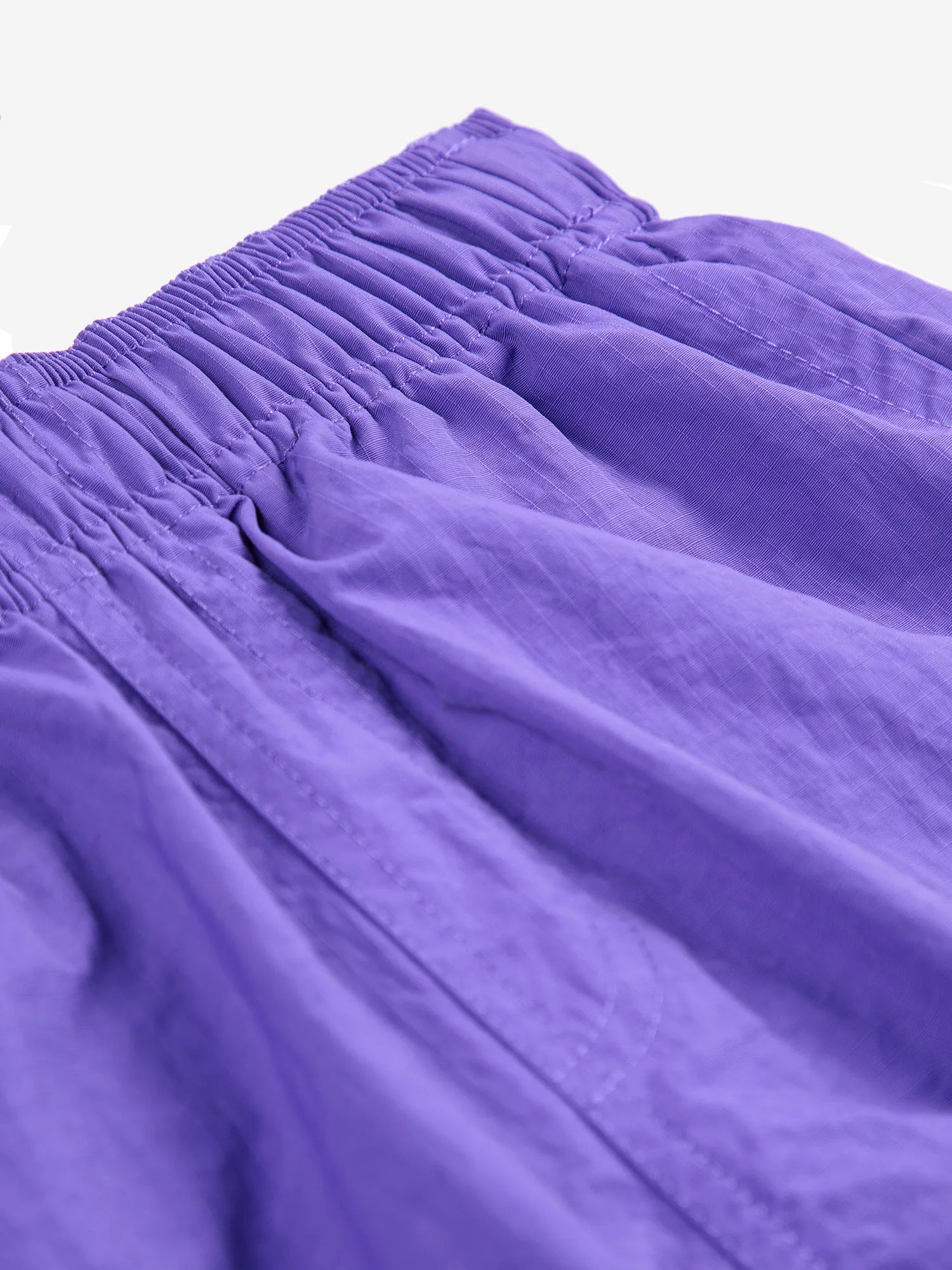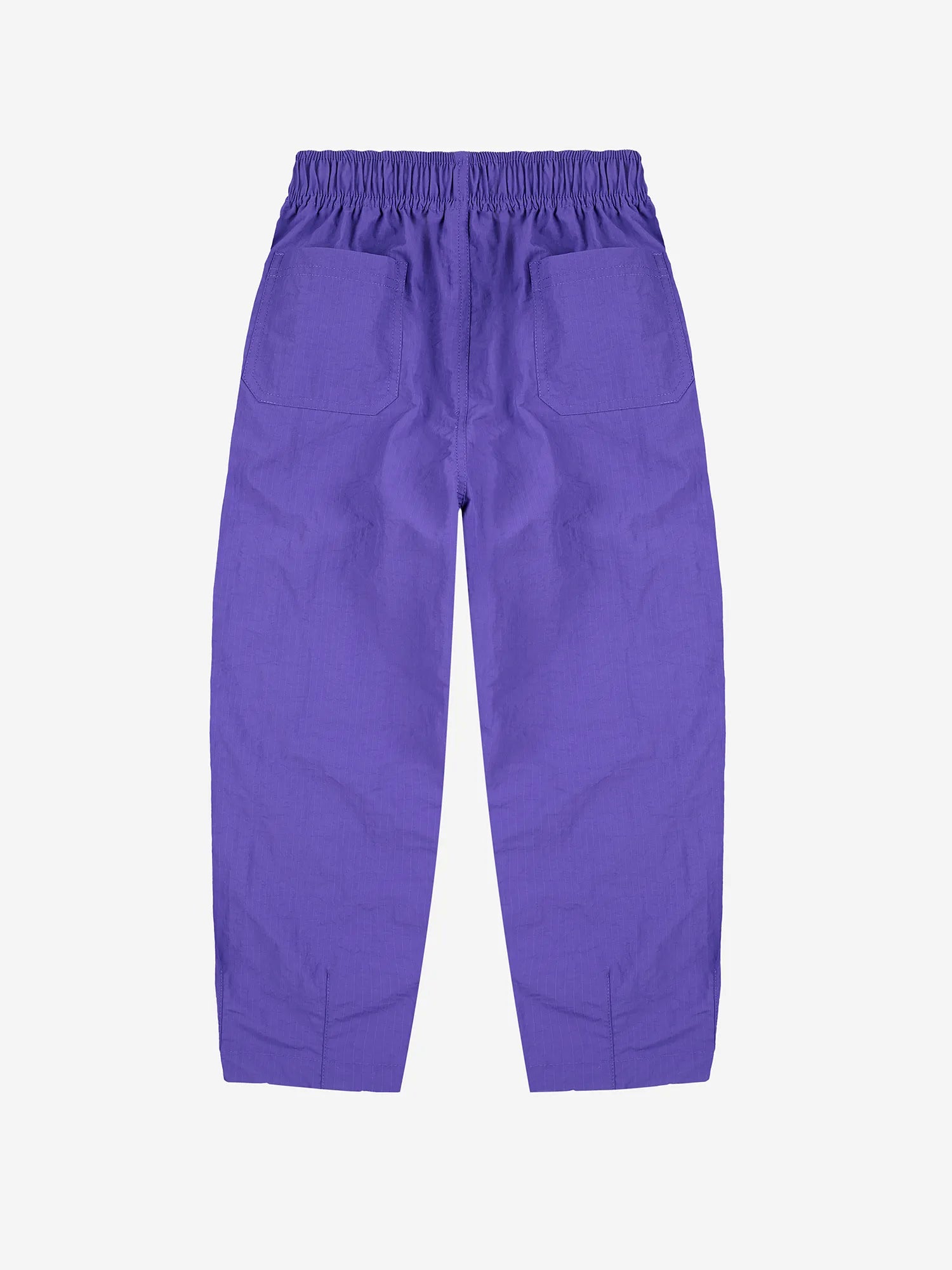 100% Polyamide violet pants. Designed with elasticated waistband, straight fit, long length, patch pocket and seam pocket. Made in China.