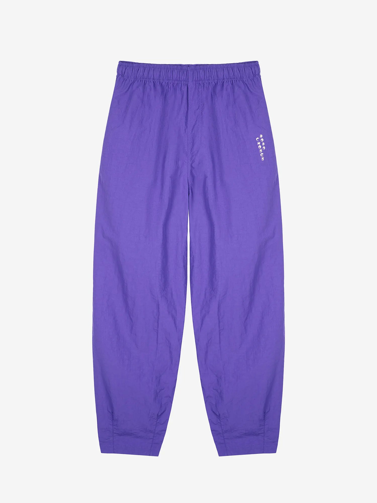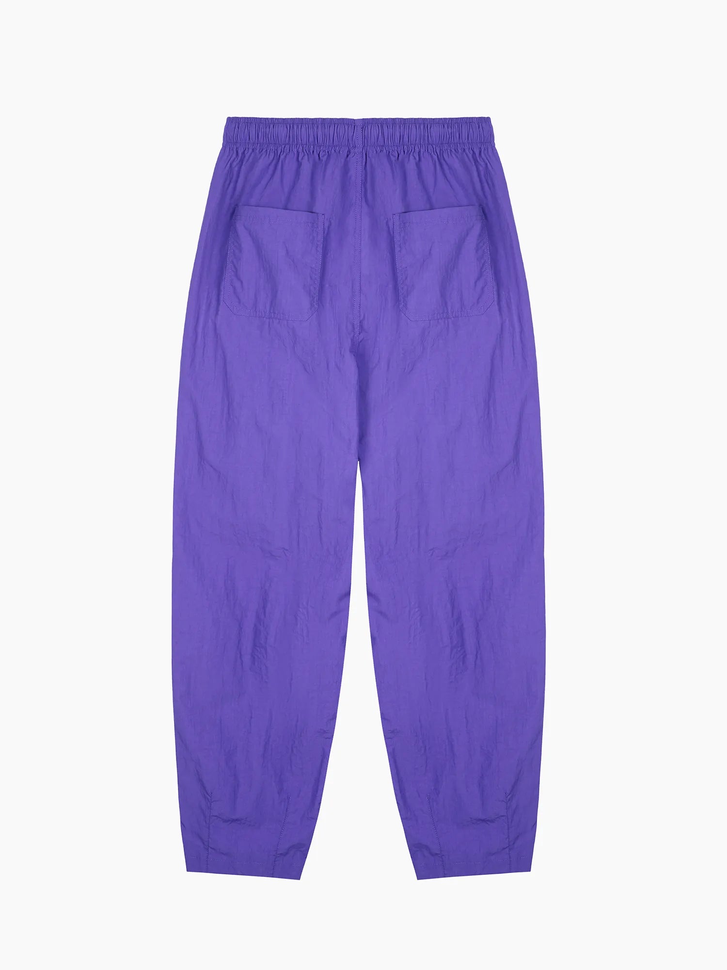 100% Polyamide violet pants. Designed with designed for a relaxed fit, elasticated at the waist for a flexible fit and lightweight fabric. Fits true to size, take your normal size. Made in China.