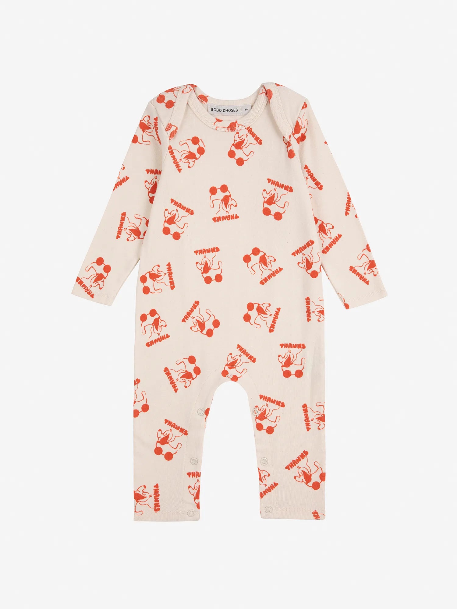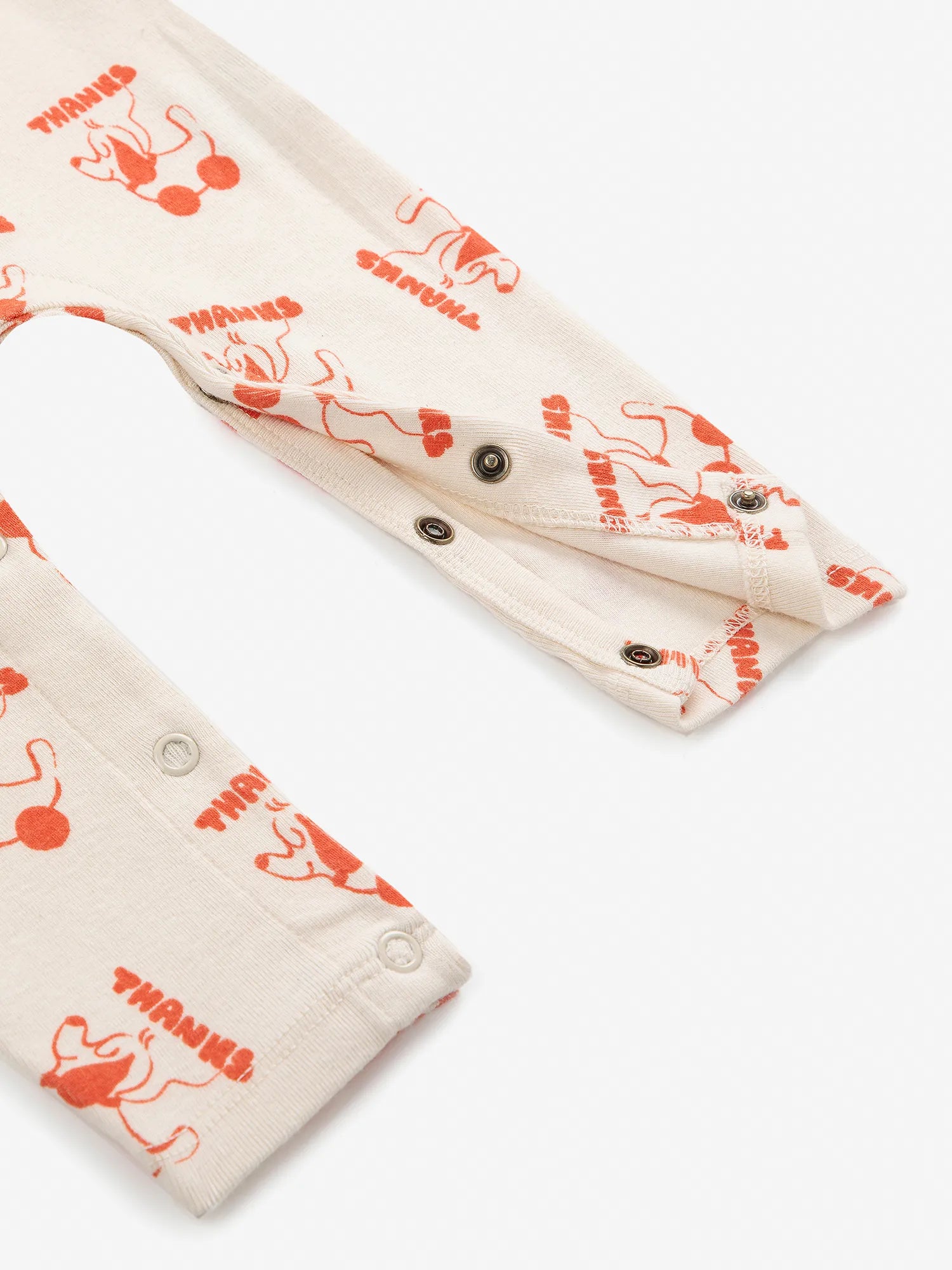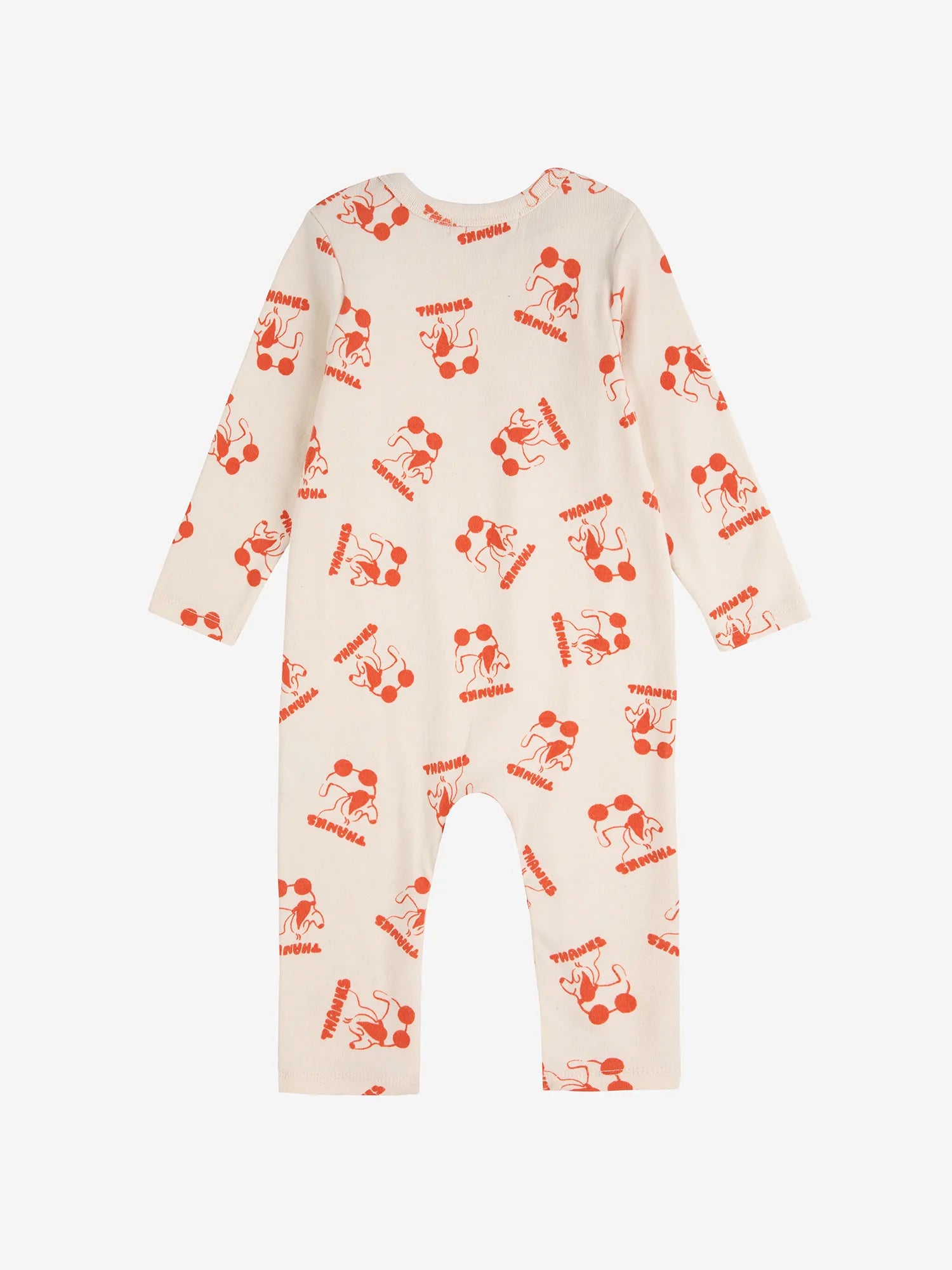 5% Elastane, 95% Organic Cotton Offwhite overall. Designed with long sleeves, crotch snap fastening, slim fit, ankle length and envelope neck. Made in Spain.