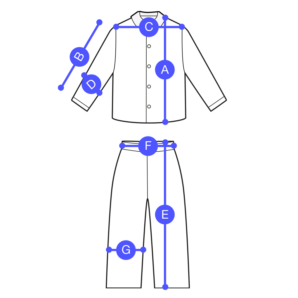 Measurements are approximate and may vary slightly due to the production process. Garments are measured flat.