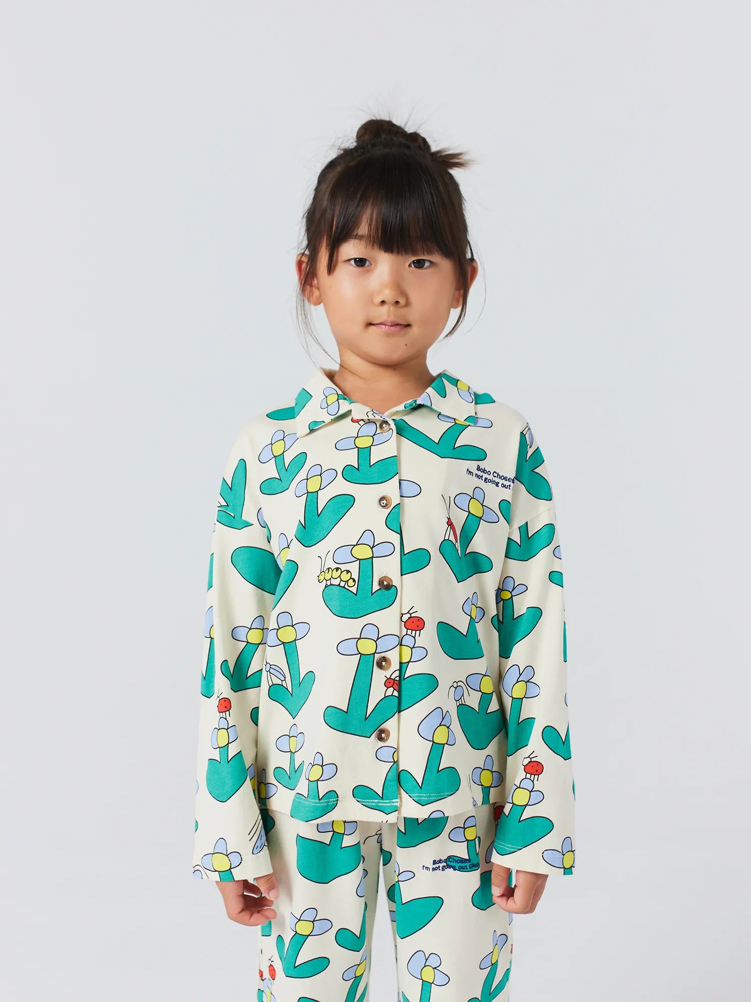 柔らかく、時を超えた、そしてとても快適!このオフホワイトのルームウェアセットは、100%オーガニックコットンで作られており、刺繍入りの長袖のテーラードボタンアップシャツと、通気性のあるリラックスフィットのパンツが特徴です。中国製。