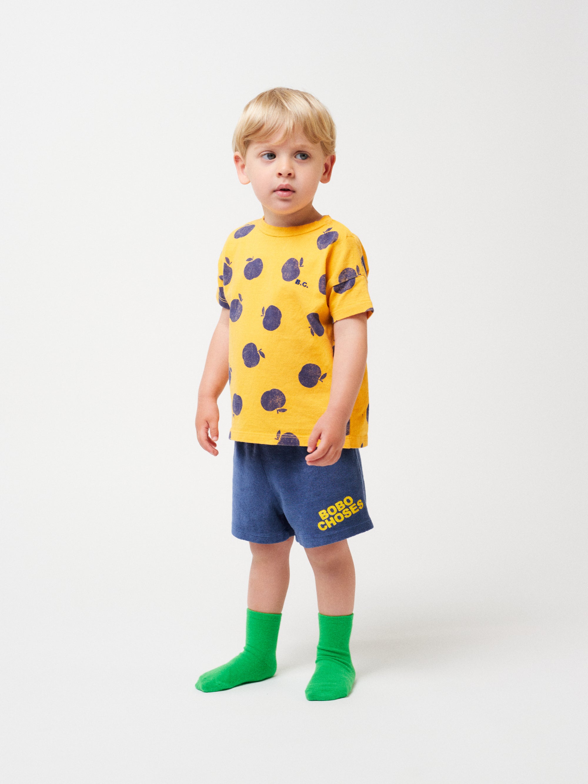 The shorter design of these midnight blue baby shorts makes this garment a cooler option for the not-so-cold days of autumn and winter. A timeless alternative that will give them the space to move without feeling restricted, while gently adjusting to their body. These shorts can keep up with little ones on their adventures.
