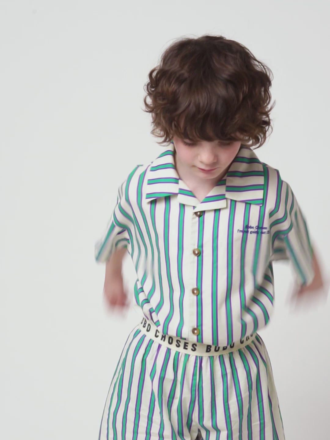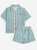 Soft meets structured! This green woven loungewear set, made from 100% organic cotton, features a short-sleeve button-up shirt with embroidery and relaxed shorts.