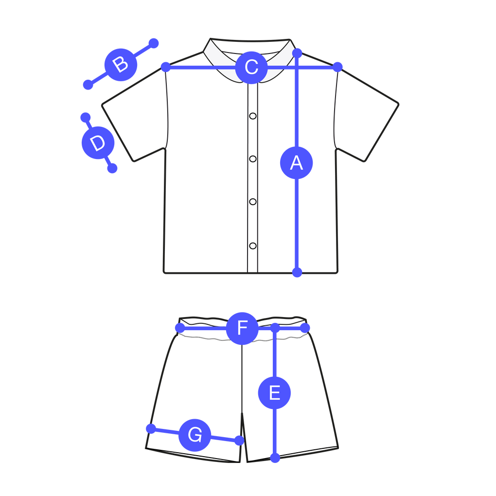 Measurements are approximate and may vary slightly due to the production process. Garments are measured flat.