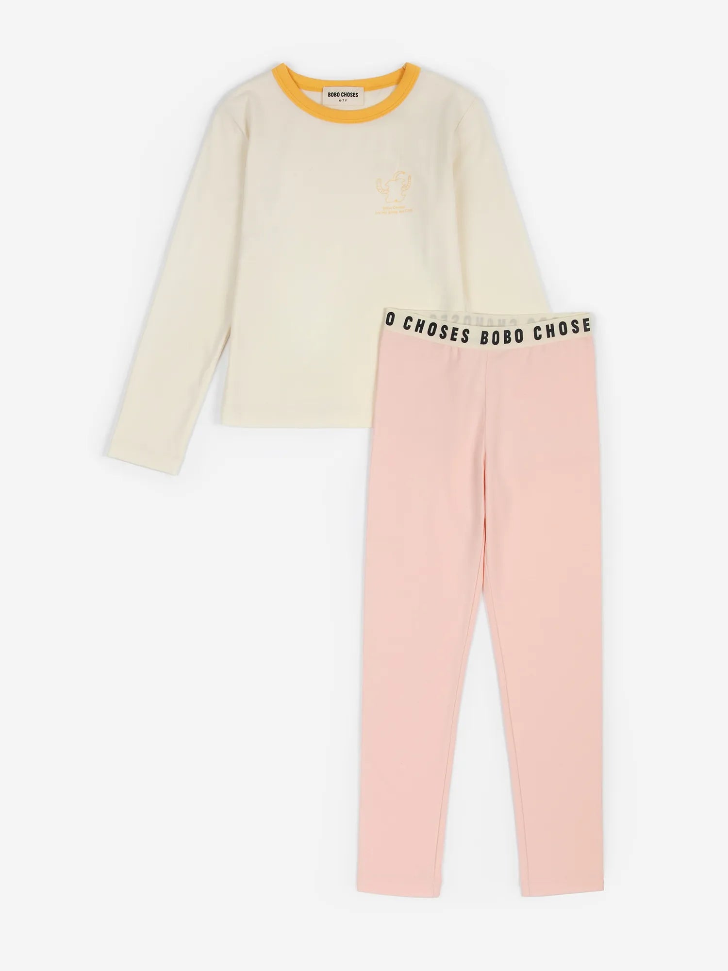 Soft as a cloud, flexible as a dream! This pink innerwear set features a snug long-sleeve T-shirt and ankle-length leggings with a stretchy waistband. Crafted from an ultra-comfy organic cotton and modal blend, it’s ideal for staying cozy while playing or relaxing. Crafted with 45% modal, 43% organic cotton and 12% elastane.