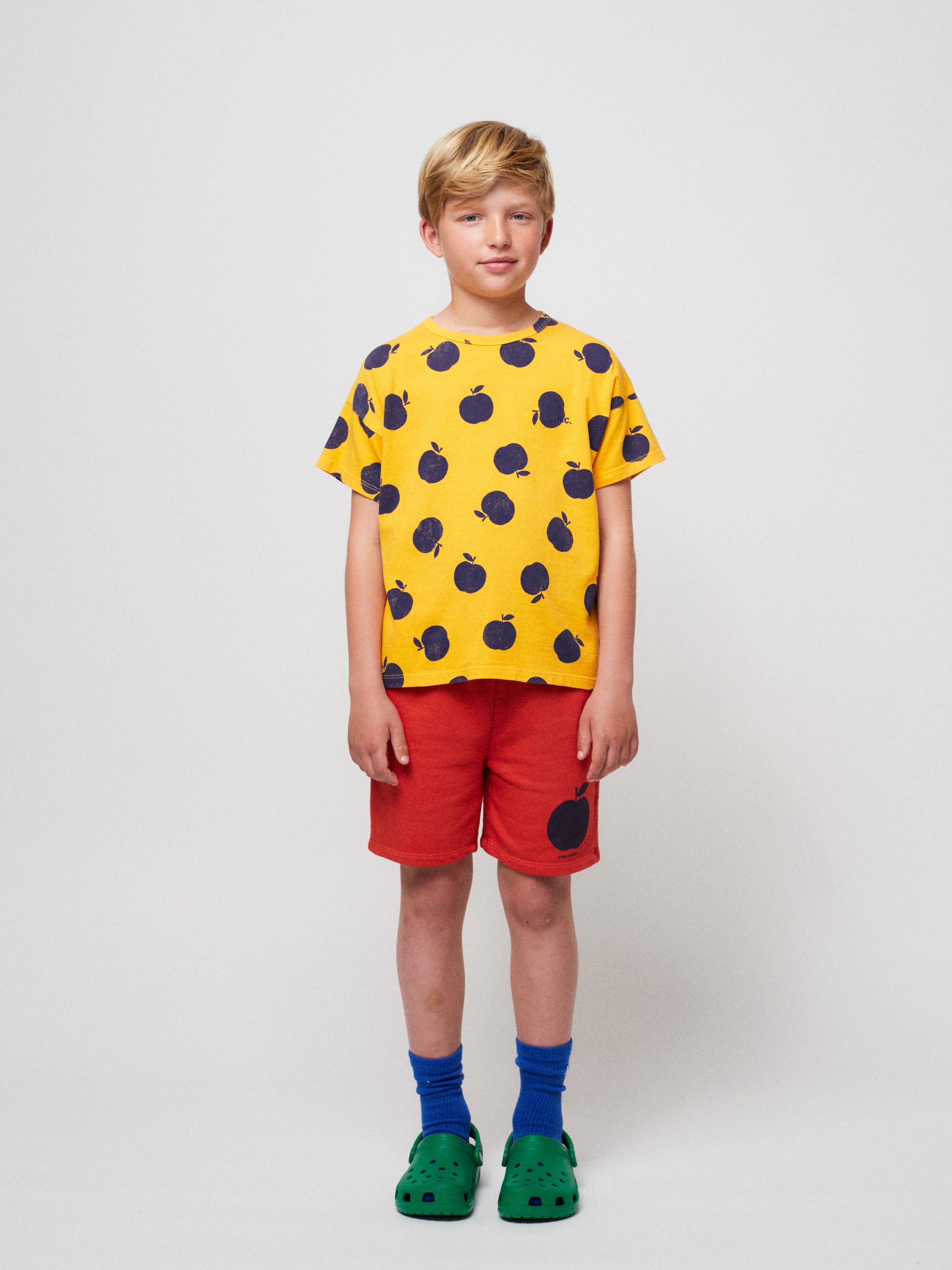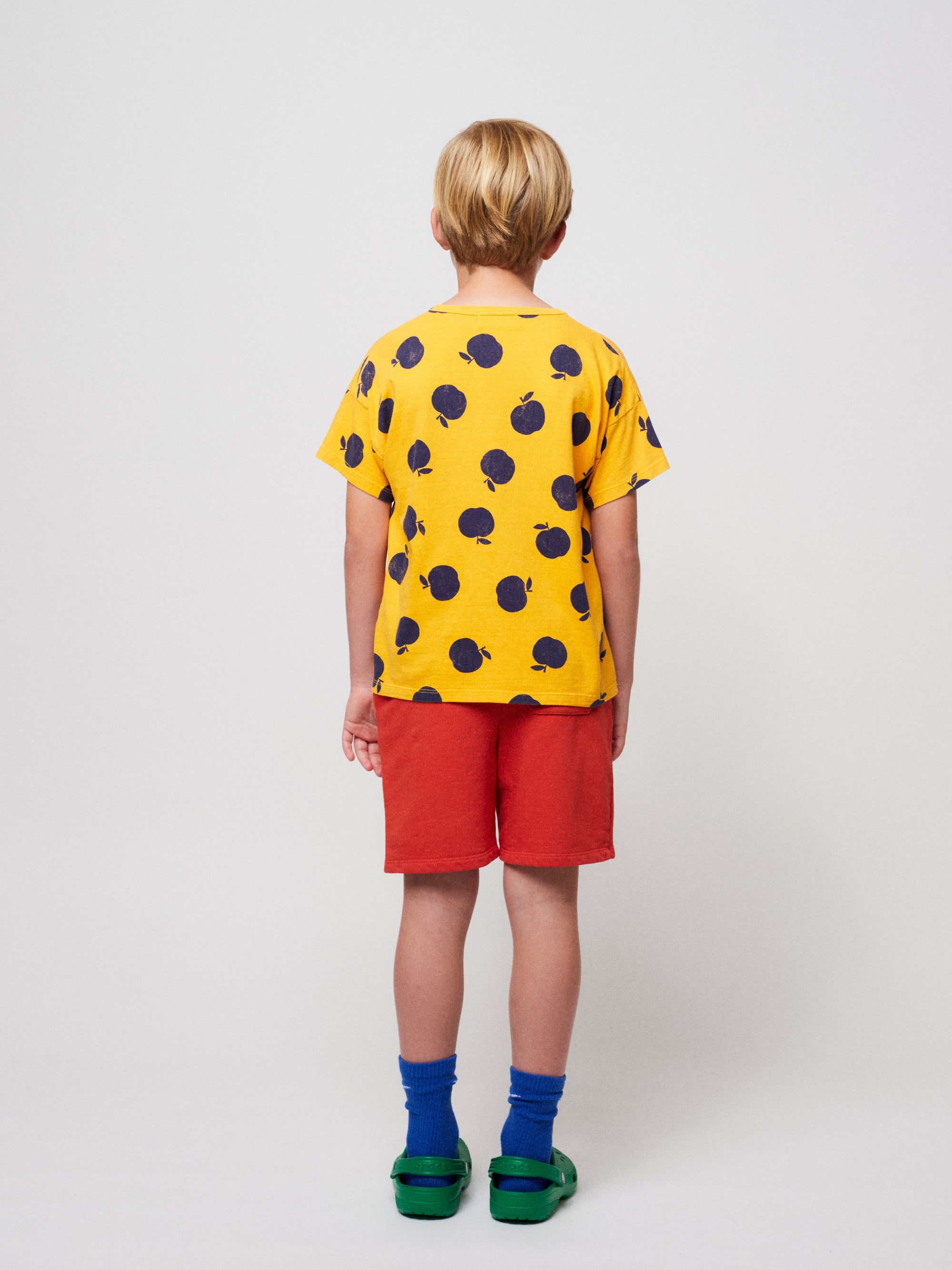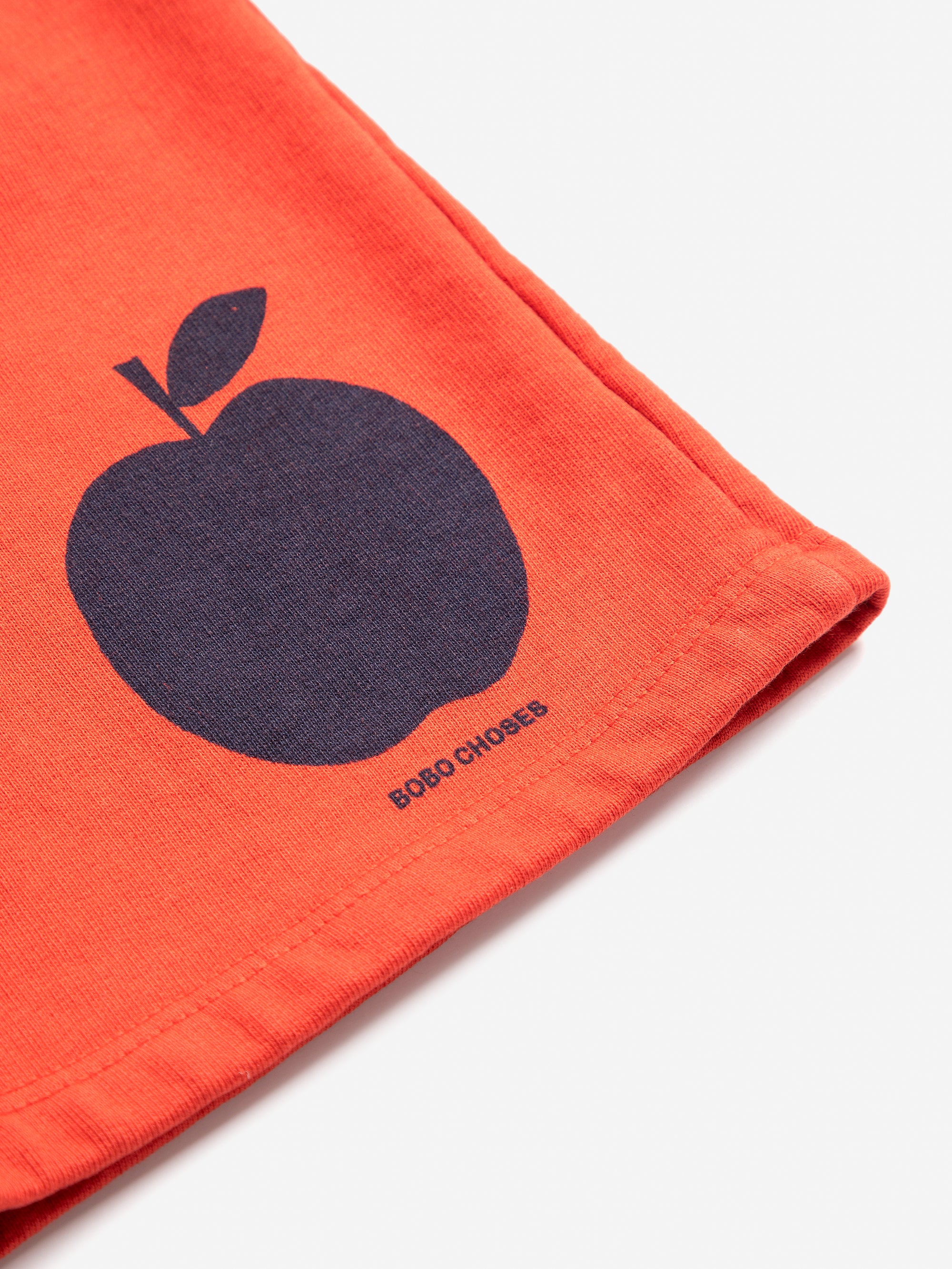 The red "Poma" children's shorts are easy to mix and match with any item in their wardrobe, offering a timeless piece to create fun and layered outfits. They are designed for both strolling through city streets and relaxing by the sea, crafted for enjoyment, doing what they love, and not taking life too seriously.