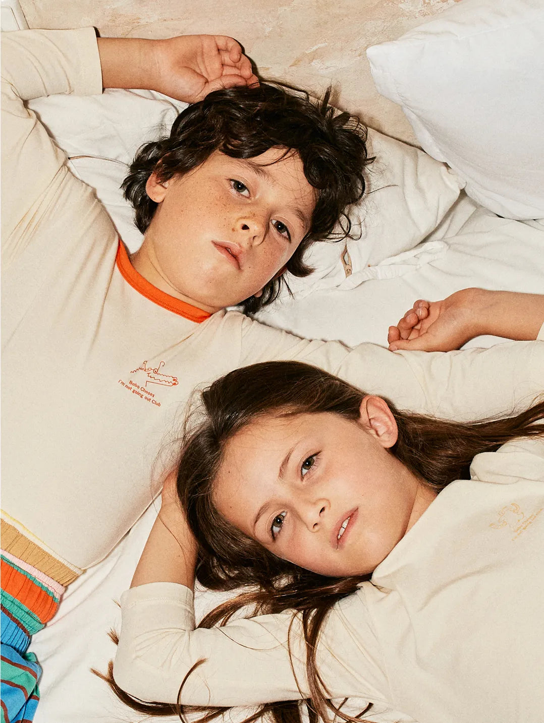 Stay comfy, dream big! This blue loungewear set, made from 100% organic cotton, includes a long-sleeve loose-fit T-shirt and relaxed-fit pants with an elastic waistband.